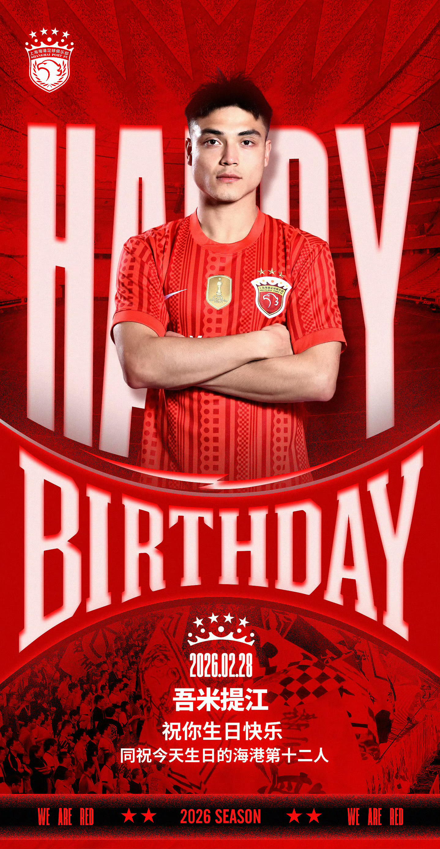 两位青年才俊同一天生日🎂上海海港蒯纪闻吾米提江