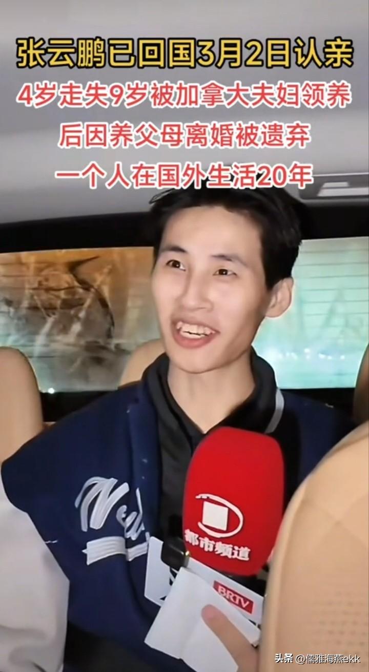 亲生父母心该有疼!被加拿大夫妇领养3个月后遭弃养,20余年国外漂泊求生的张云鹏在宝贝回家网站及网友们资助下回国认亲了,苦尽甘来! 2001年阴历6月,4岁的张云鹏在沈阳火车站与亲人失散,后被沈阳福利院收留。 2006年,9岁的张云鹏被一对加拿大夫妻收养,远赴异国生活,本以为是美好的开端。 然而,到加拿大3个月后,养父母离婚,张云鹏遭弃养,靠国家救济及寄养,开始了20年的漂泊求生,勉强读完高中,没有钱上大学。 张云鹏说,到加拿大的第一天,就被养父母指责偷了他们的珠宝。继而被弃养,可想可知,在言语不通的异国他乡,9岁的他是多么孤独,无助和悲伤,这样的日子熬了20年,泪奔! 双向奔赴终团圆!在领养到国外的高洋和苏牙子认亲成功后,张云鹏也燃起了寻亲的热切希望。 2025年,张云鹏在加拿大求助宝贝回家,得到了荷兰寻亲成功者高洋的支持和帮助,釆血邮寄回国。 在一次夜聊中,发现疑似父亲也在网上寻找他,于是,高洋与加拿大华人同胞再次联系张云鹏釆血,并委托回国的朋友带回检测,最终与辽宁通化的父母比对成功,原来父亲早已于2014年釆血入库。 从小遭受心灵创伤,生活的磨难,经济的拮据,认亲成功,张云鹏喜中藏忧,回国认亲是一笔不小的开支,该如何成行? 在高洋及宝贝回家工作人员和还有许多国内外网友的资助下,张云鹏的回国之旅才得以2月27日快速成行,3月2日认亲。 飞机落地那刻,穿着单薄,背着简单行李的张云鹏,即使忘了乡音,还是用不太熟悉的中文激动地说,“终于回家了”! 元宵节前他将与家人团圆,希望他的父母张开双臂,将他拥入怀,弥补缺失的爱,抚去他心灵的伤害,从此不再是无根的浮萍。 虽然相隔千万里,相别25年,但相认只是一滴血的距离,希望所有对自己身世存疑的孩子勇敢寻亲,别让父母等太久!别给人生留遗憾!