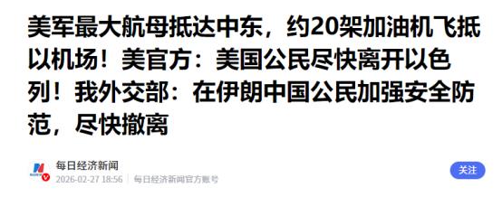 信号已经很明显了 2月27日那天,好几条新闻凑到一起,明眼人都能看出来,中东的安全形势已经紧张到了极点。美国国务院当天直接下令,驻以色列的非紧急必要人员还有他们的家属,必须立刻撤离以色列。 美国驻以大使赫卡比更是急着催促,说想离开的人务必“今天离开”,重点就是赶紧先撤出以色列,后续的行程再慢慢安排。 几乎在同一时间,中国外交部也发出了分量很重的安全提醒,说伊朗现在面临的外部安全风险已经显著上升,建议中国公民暂时别去伊朗了,已经在当地的要赶紧加强安全防范,尽快撤离。 不光如此,中国驻以色列使馆也同步发了公告,说中东地区的安全风险还在进一步上升,提醒在以色列的中国公民多关注安全形势变化,千万不能掉以轻心。 可能有人觉得,政府发个提醒、撤个侨而已,没必要太紧张。 但要知道,像美国、中国这样的大国,不会随便发布这种紧急撤离通知,尤其是多个国家在同一天针对同一地区密集行动,这背后肯定是掌握了足够的情报,判断出风险已经到了不得不防的地步。 先说说美国的撤离行动,这可不是常规操作。 美国驻以大使特意强调“今天离开”,这话里的紧迫感藏不住。要知道,美国在中东一直有很强的军事存在,现在主动撤走非核心外交人员和家属,说白了就是在做“战前清场”,减少万一发生冲突时的人员伤亡和麻烦。 而且据消息说,美军已经在中东部署了“福特”号和“林肯”号两艘核动力航母,还有几十架隐形战机,数千枚巡航导弹都已经瞄准了目标。美国总统特朗普也说了,虽然希望和伊朗谈判,但不排除动武的可能,还没做出最终决定。 一边往该地区增兵施压,一边撤走非战斗人员,这明摆着是做好了冲突的准备,这个信号再明确不过了。 再看中国针对伊朗的安全警示,同样不是空穴来风。伊朗现在面临的外部压力确实越来越大,美军的军事部署已经形成了合围之势,伊朗自己也宣布国防部队进入全面战备状态,明确表态如果遭到侵略,一定会让对方付出惨重代价。 而且不只是中国,英国、加拿大、法国等二十多个国家都在这几天密集发布了针对伊朗的撤离通知,要求本国公民赶紧离开。这么多国家同时行动,说明国际社会对伊朗的安全局势判断高度一致,都认为那里随时可能爆发冲突,这种集体预警的情况可不多见,绝对不能当成巧合。 中国驻以色列使馆的提醒也很有必要。以色列最近一直在空袭黎巴嫩的目标,和周边地区的矛盾越来越深。而伊朗已经明确表示,如果遭到美国打击,以色列作为美国的盟友,肯定会成为反击目标。 伊朗的导弹和无人机能力足以覆盖以色列全境,这就意味着以色列已经被卷入了美伊对抗的漩涡里,安全风险自然直线上升。中国使馆的提醒,就是基于这种局势做出的务实预警,为的就是让在当地的中国公民提前做好准备。 可能有人会问,这些事离我们太远,和普通人有关系吗?其实关系不小。如果中东爆发冲突,不仅会影响当地的中国公民安全,还可能导致国际油价波动、全球供应链受影响,最终会间接影响到我们的日常生活。 而对于那些在伊朗、以色列的中国公民来说,现在最该做的就是听从使馆的提醒,不要抱有侥幸心理。中国驻伊朗使馆已经做了充分的准备,规划了两条陆路撤离通道,还有8辆应急大巴随时待命,能在20小时内把留守的公民安全送出境,之前也有过成功转移公民的经验。 在当地的同胞一定要赶紧联系使馆登记个人信息,配合撤离安排,提前准备好护照复印件、足够的现金和应急物资,不要去边境、军事设施这些高危区域。能通过商业航班撤离的就尽快走,要是航班取消了,就及时向使馆申请陆路撤离名额,千万别自己开车去边境,以免遇到危险。 说到底,2月27日这一天多国密集发布的安全提醒和撤离命令,就是最明确的安全信号。这不是小题大做,也不是制造恐慌,而是基于实实在在的局势做出的必要举措。大国的外交行动和安全预警,从来都是慎之又慎,背后必然有充分的依据。 现在中东的局势就像一个装满了火药的桶,稍微一点火星就可能引爆。对于我们普通人来说,要做的就是关注局势变化,提醒在当地的亲友重视官方预警,生命安全永远是第一位的。 那些还计划去中东相关地区的人,一定要取消行程,别拿自己的安全冒险。 这些信号已经够明显了,希望每个人都能看懂其中的分量,重视起来就是对自己和家人最大的负责。也祝愿在当地的中国同胞都能平安撤离,顺利回家。