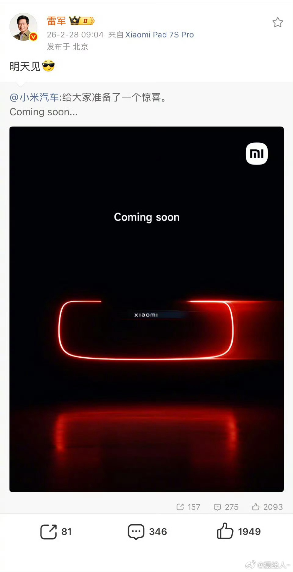 小米超跑难不成年轻人的第一辆超跑要来了?