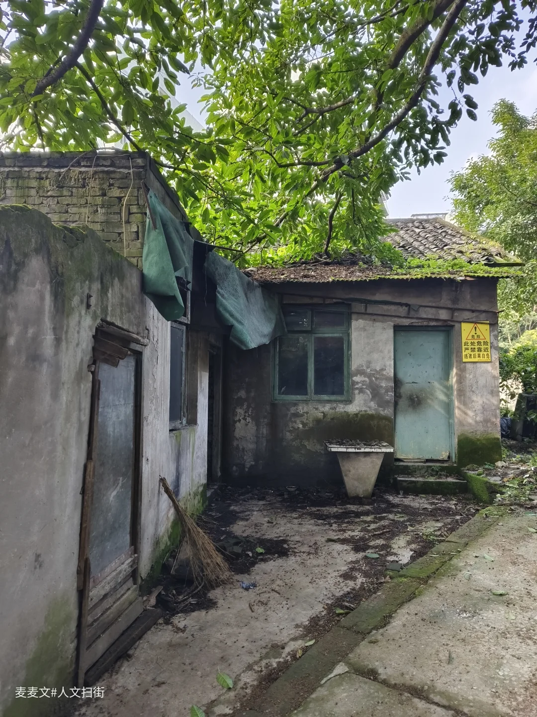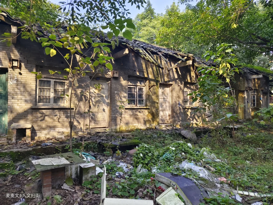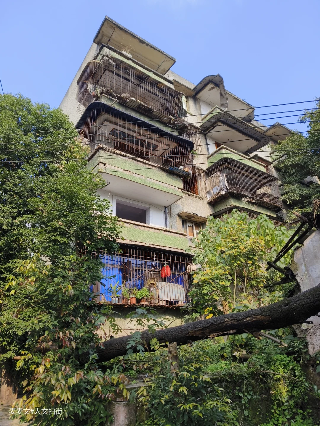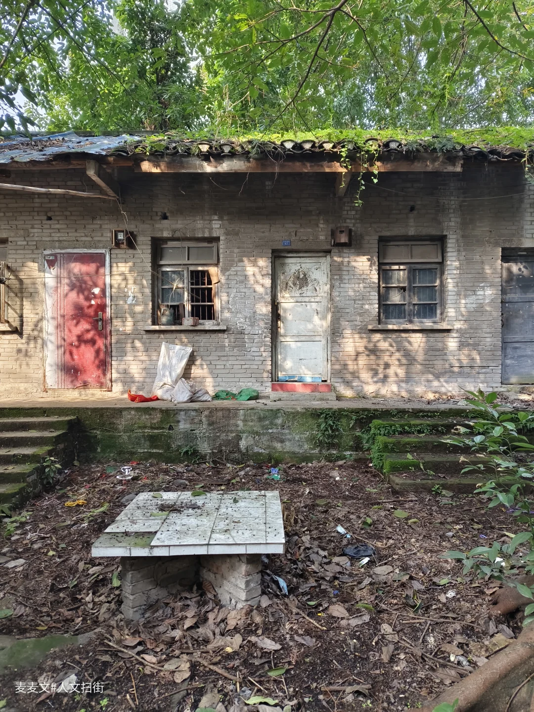 蔡家横街的蓝底老门牌还钉在斑驳的砖墙上,像一枚被遗忘的邮戳。青瓦屋檐塌了半边,木门上的“福满人间”红联褪成了淡粉,院坝里的黄狗独自穿过蛛网与杂物,脚步声在空荡的巷弄里格外清晰。 老家属楼当年流行的马赛克瓷砖的阳台爬满了藤蔓,窗棂的铁栅栏锈迹斑斑,楼下的菜地还种着青菜,却再也等不到主人的身影。被车衣覆盖的轿车、歪斜的木梁、墙上“危房危险”的告示,都在诉说着人去楼空的故事。 这里曾是重庆北碚蔡家老街的烟火核心,如今只剩时光在砖瓦间缓慢流淌,把老场镇的记忆,封存在每一道裂缝里。