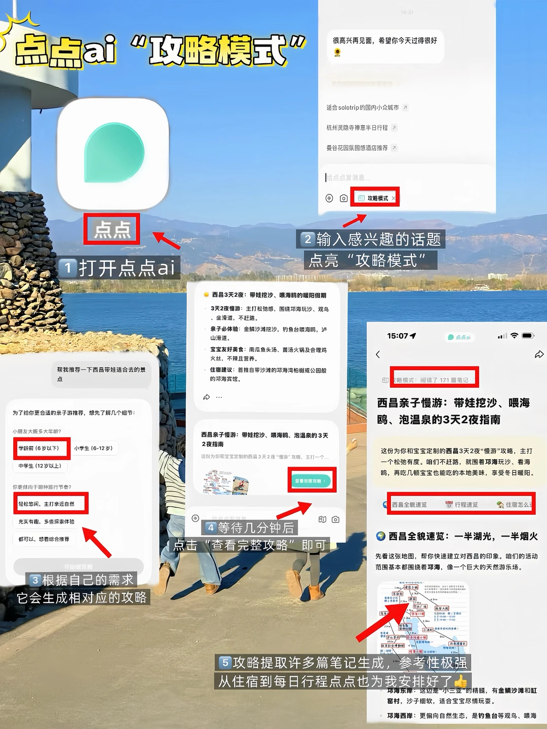 带娃出门真的没时间慢慢研究,现在出发前打开点点的攻略模式,并输入需求,攻略+种草笔记一键get,不愧是里最会玩的那些"活人"做的攻略!!