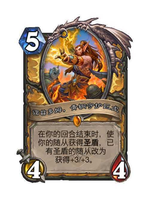 炉石传说 骑士传说随从,5费4/4在你的回合结束时,使你的随从获得圣盾,已有圣盾