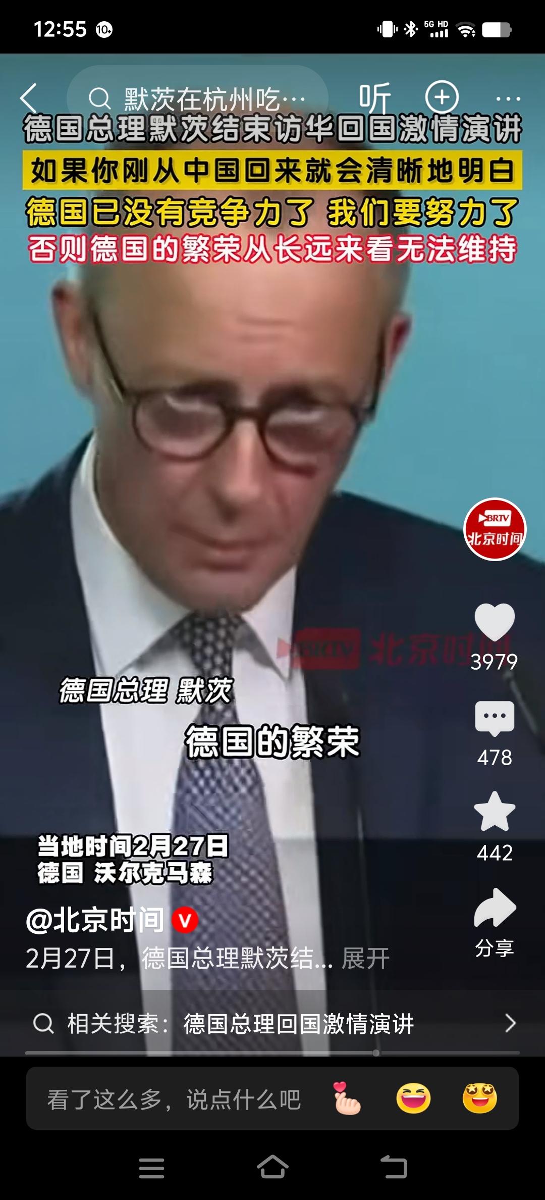醒醒吧,德意志!实际上德国对中国几乎一无所知 默茨从回国后,对着慵懒德国大呼小叫,着急了。原因就是落后了,不追不行了。德国总理默茨从中国访问回到德国以后,就感觉到对德国不行,不够努力,效率也不高,需要改进作风,加强经济建设了。 其实德国人对中国是不了解,最近看到一个德国的学校课本。他们的2026课本在介绍中国的时候,还认为中国是普遍是交通靠自行车倒骑驴的,种地靠牛呢,还是处于落后的状态。记得40年前,德国大众是最先与中国合作的,当时日本人都不屑于中国合作造小轿车。中国目前每年轿车销售超过3000万辆,已经不是德国这样老牌汽车制造国家所能达到的高度了。 所以德国就是一个欧洲的代表,别看到他们的总理今天来了,别看到欧洲国家派对来了他们对中国的印象,也就是说他们社会普遍大众对中国的印象,因为中国还是30年前,40年前那样的。因此欧洲列强工业国家,首先要改变对中国的态度,从媒体宣传,从社会舆论导向,都要把中国树立成正面的形象,才好学习中国经验,才好与中国正常的做贸易搞经济。 所以默茨回国后能够看到德国的不足,如社会进取心低下,看到人民不努力,看到躺在过去的功劳簿上不思进取,看到整个社会的劳动生产率低下,只是看到了一个方面。重要的应该看到中国人民积极努力,勤奋不懈,有的对国家、对民族、对社会、对家庭的一种贡献感责任感,有的对历史、对现实、对未来的使命感和荣誉感。这一点绝对是中国文化内涵,中华文明内核,德国人不知道看到了没有? 应该这样讲,欧洲人善于享受多少年了,是基于制度领先,规则的的领先,已经把他们搞得十分慵懒了。过去我们一直说德国人比较讲究规矩与制度,实际上就是墨守陈规。 一会儿再看看德国课本介绍中国这几页,你感觉可笑不,能看出德国课本,编撰的有关中国这一段也有一个四五十年了吧。 要学习中国先改改课本吧,先改改舆论风头儿吧。中国人在只争朝夕中拼搏奋进,德国还在沙滩上树荫里度假度周末呢。醒醒吧德意志,你的人民催你起来上班了。