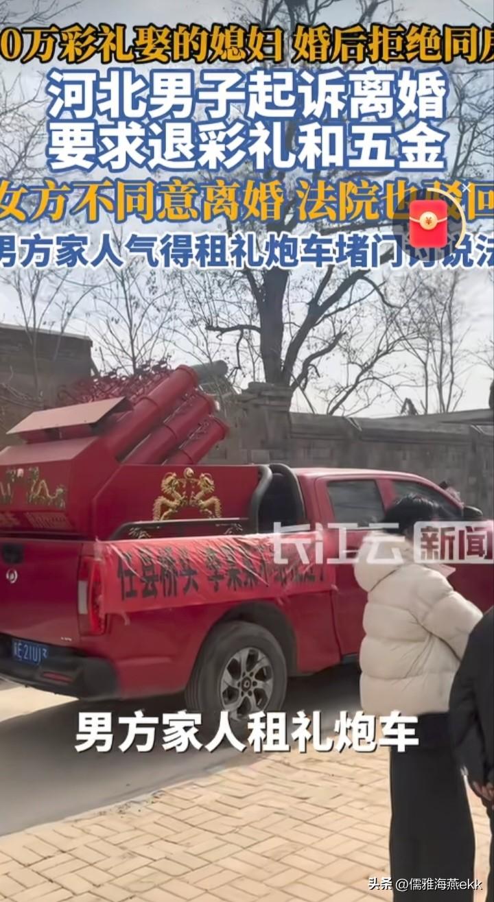 不同房不离婚不退彩礼,想死耗“过期”,邢台彩礼案如果处理不好,捞女敛财又有了门道,毎一次的协调都将是向骗婚乱象妥协的推波助澜,何时休? 近日,邢台彩礼案闹得沸沸扬扬,男方花费30多万彩礼和五金娶过门的媳妇,结婚10个月不肯与丈夫同房,男方找媒人及中间人上门调解退婚退彩礼,女方不给商量余地。 男方起诉离婚,要求退彩礼退五金,过不来就分道扬镳。女方却说两人有感情,没有不同房,两人还是同床,男方胡说八道,反倒是丈夫曾打她,推拽她,致她有抑郁症,彩礼钱用于了生活开支和看病。 法院审理认为,女方不同意离婚,且没有双方感情破裂的证据,驳回上诉。 好在男女双方住得不远,走投无路的男方开来一辆礼炮车,礼炮一放,锣一敲,夹着“骗婚”“骗彩礼”的高喊,十里八乡的人都来看热闹。 最后是政府介入调解才疏散了人群,女方也同意离婚。代理律师称,男方做法欠妥,已向女方提出法律建议,酒席,改口费等不属于彩礼范畴,陪嫁物品得从彩礼扣,彩礼退的比例与结婚时间长短有关,一般结婚满一年以上不退彩礼。 难不成女方不离婚,是为了耗时间?耗了10个月,再耗两个月就完胜,到哪去一年能赚30多万?否则找不出女方坚持的理由。 有律师说,男方上门闹事的行为侵犯了女方名誉权,女方可以维权。 不同房,不离婚,不退彩礼,这不是耍无赖吗?违背妇女意愿,告強奸;动手,告家暴;结婚不等于同意同房,男方该如何维权?总之,都是彩礼惹的祸,想破脑壳也找不到更好的对策。 不管是不是骗婚,这种找各种理由分手不退彩礼已成乱象,彩礼只要过个手,哪怕还没结婚,就可以明目张胆的不退,各方再来协商调和,息事宁人,最终还是以男方妥协,多少退点收场,不然有什么办法?骗婚的都是不拿女儿幸福当回事的家庭,纯粹为了钱,男方也耗不起。 刚看了一个律师的视频,称刚出庭完,男女结婚两个月,彩礼38.8万元退回28万元,并称这还是比较好的结局。 每一次的协商调和都是向乱象妥协低头,起到了推波助澜的作用,问题没彻底解决,还被部分捞女摸透了门道,搅坏了社会风气,伤的是想认真过日子,寻找真爱的男女。