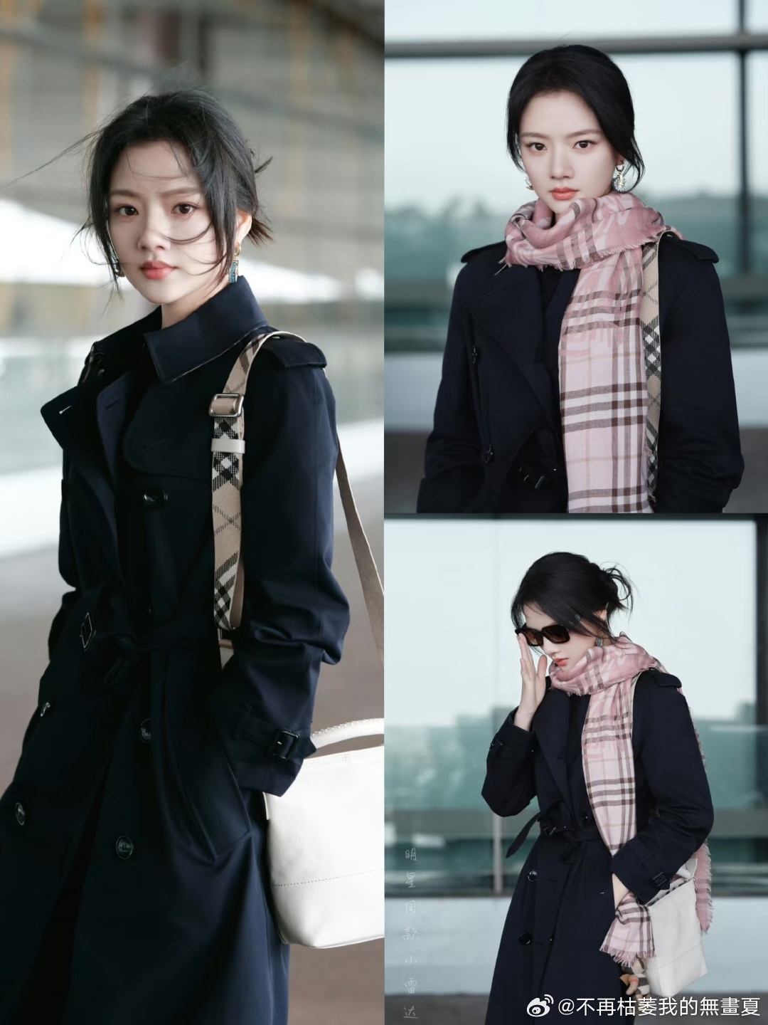 任敏活人感太强了吧,春节穿着省服回老家过年,转头就去了伦Burberry的时装周