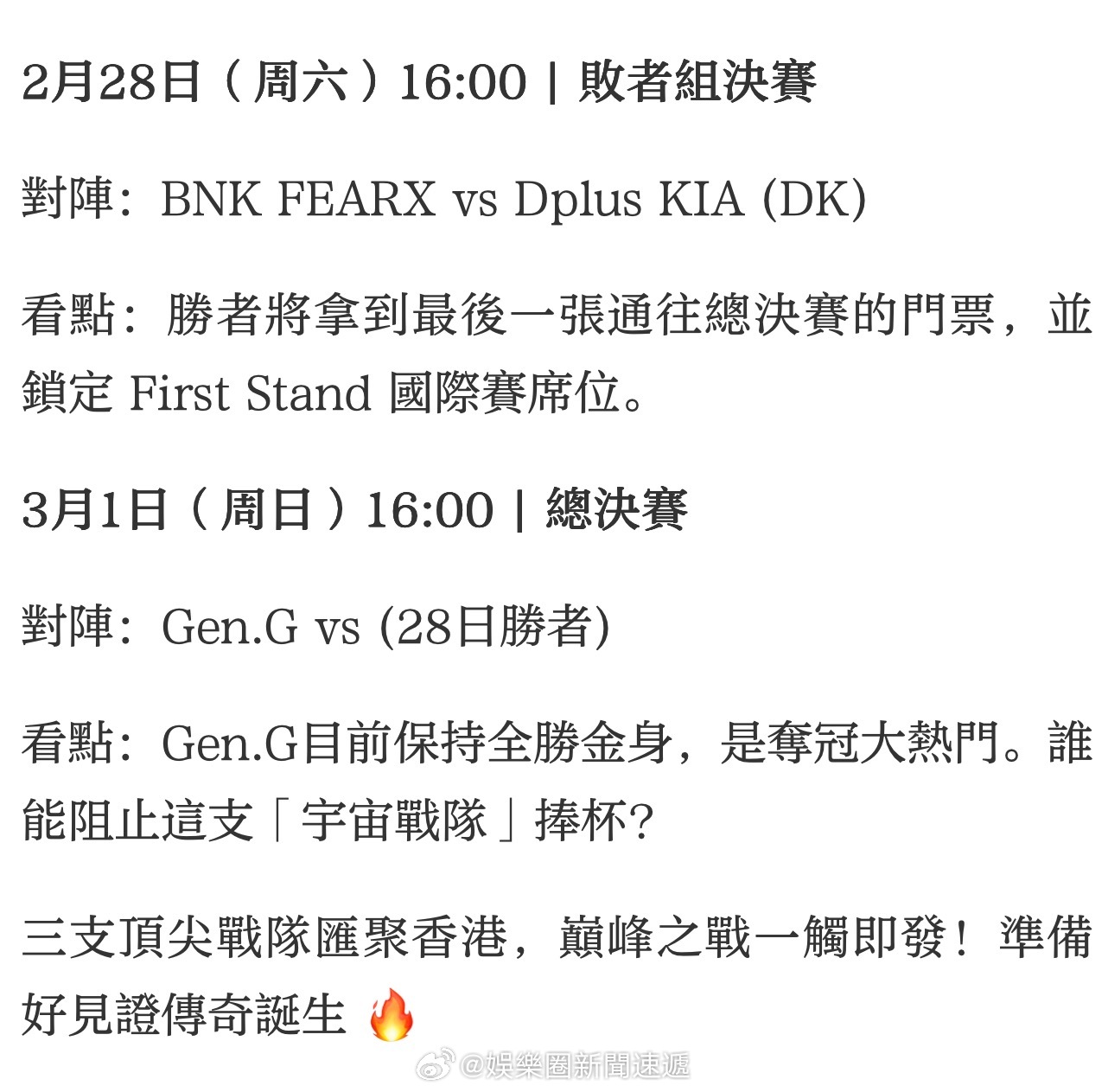 国际大都会香港 国际金融中心香港 「2026 LCK CUP 明日九龍啟德開賽..時間 交通 場外活動一站式指南 … 大公文匯全媒體報道,2026年LCK Cup(LCK盃 )香港決賽即將於明日(2月28日)在九龍启德体艺馆 (Kai Tak Arena ) 燃起戰火!這是LCK史上首次在韩国 境外舉辦正式決賽,絕對是不容錯過的電競盛事。大公文匯全媒體為你整理的保姆級觀賽攻略:📅 賽程安排:本次香港 站包含兩場至關重要的BO5系列賽 ,將決定首屆LCK Cup的冠軍歸屬以及前往國際賽First Stand 的名額..」入內看全文:网页链接 电竞 即时娱乐新闻 娱乐圈AI 资本市场金融 财经 ……… 香港