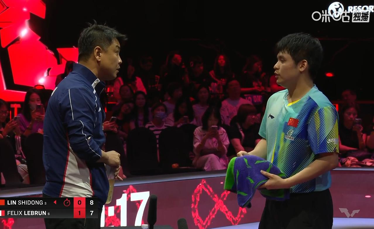林诗栋千万不要退台, 所有相持,林诗栋都输了。 林诗栋第一局 12;14输了之后, 并没有受到影响。 第二局 林诗栋打的很积极 开局胶着后, 林诗栋8:5领先。 结果林诗栋又犹豫, 结果被小布追到了7:8 王皓叫了暂停。