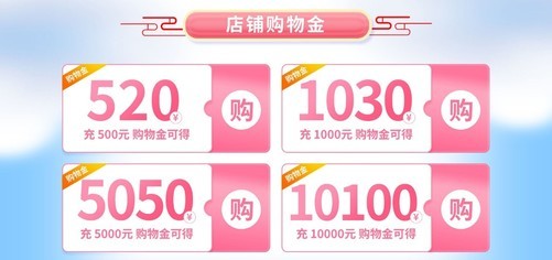 活动期间,充值购物金还享加码福利,有多个档位可选,充500元额外得20元,充10000元额外得100元,多充多送!
