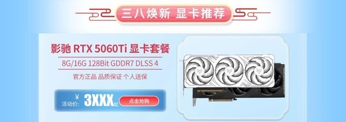 影驰GeForceRTX5060Ti系列显卡,提供8GB/16GB显存可选,依托RTX50系全新硬件技术,轻松满足2K分辨率下3A大作流畅运行,日常生产力需求同样游刃有余,且支持个人送保,售后更安心。