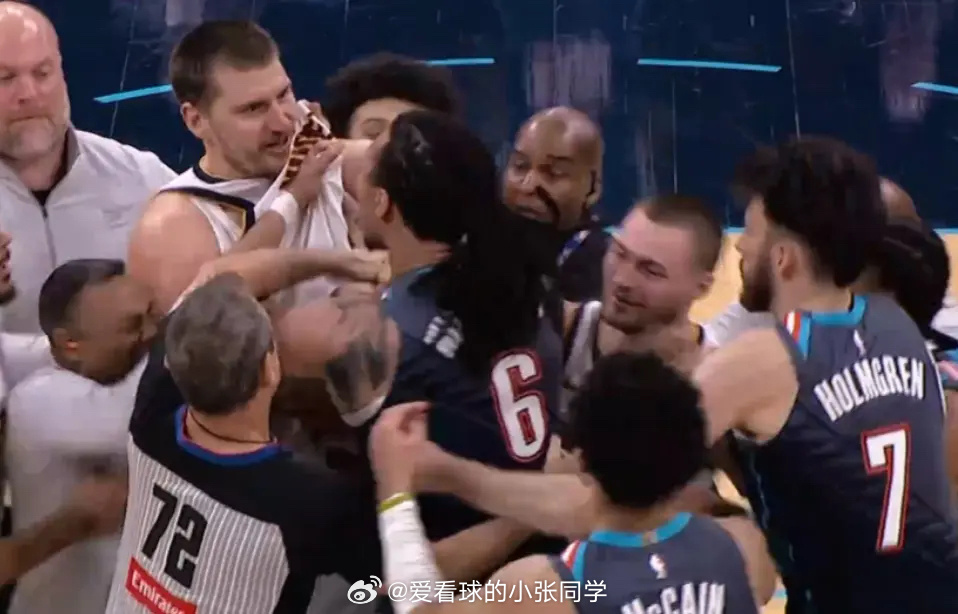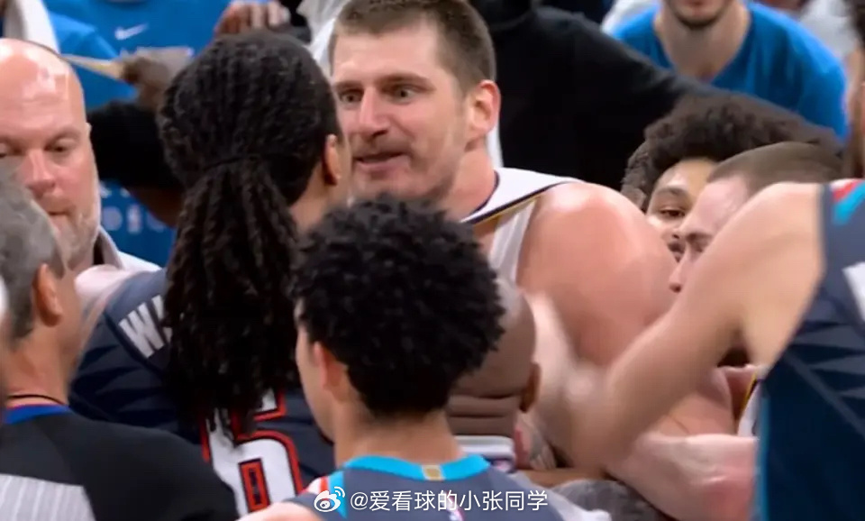 雷霆球员杰林冲上去帮队友多尔特出头,他与约基奇推搡互相撕扯球衣,双方多位球员围拢在一起爆发冲突。裁判随后回看录像之后,吹罚多尔特一次二级恶意犯规驱逐离场,而约基奇与杰林各一次技术犯规。