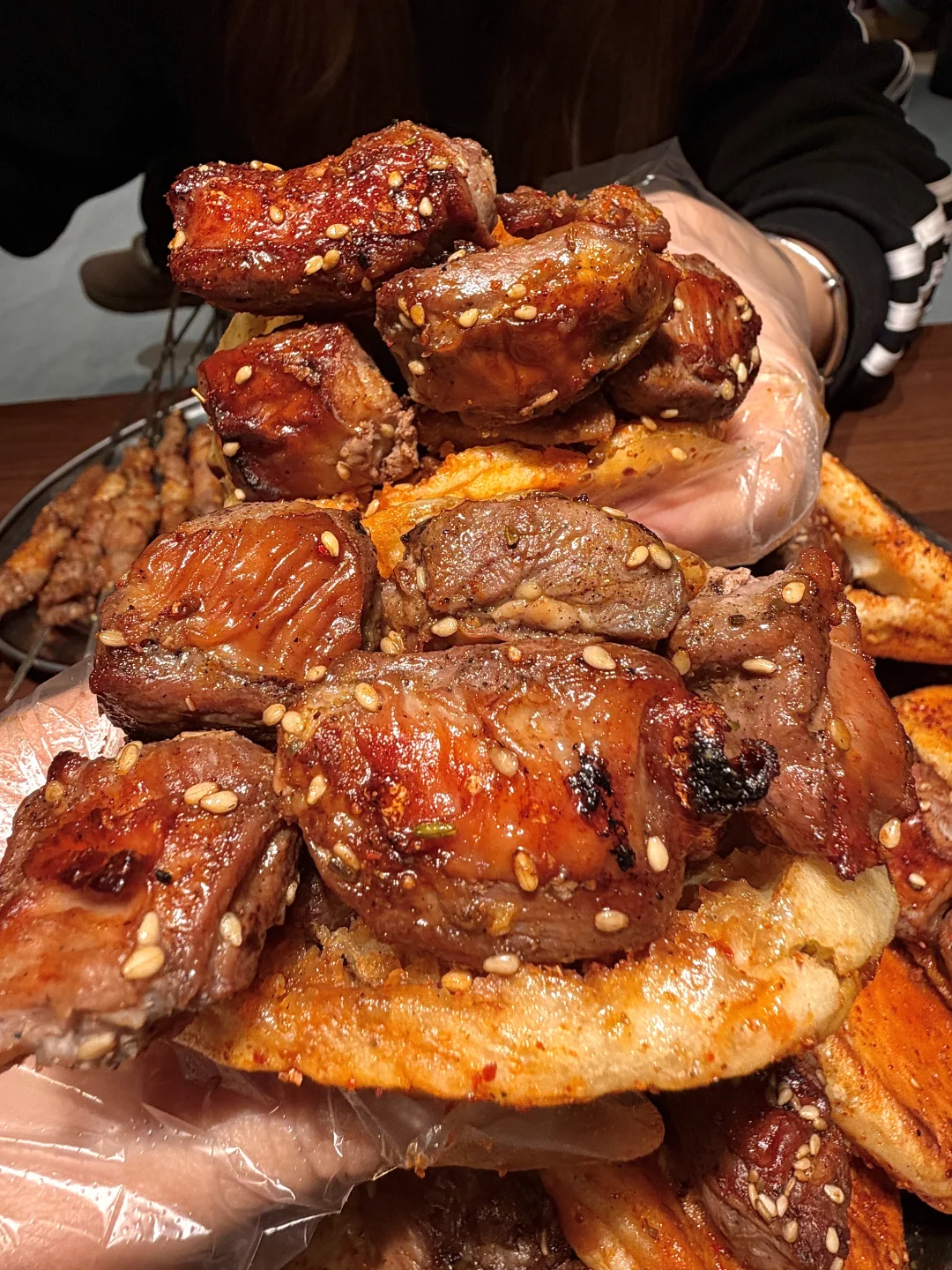 真是北京数一数二好吃的烧烤店!!! 只有本地人带路才找到,在二楼有点隐蔽但ju好吃!叫📍带你去趟佳木斯烧烤。老板厨师都是正宗东北人!烧烤、麻辣烫、炒冷面人均三四十就能吃饱,尤其是东北老式麻辣烫便宜大碗量足!已经成为我和室友在北京的干饭根据地了😭 离南锣鼓巷和亚运村都不远,油边都是空运过来的!很大串吃得出的品质好!不到饭点就坐满了!建议想去的姐妹早点去~真心值得n刷