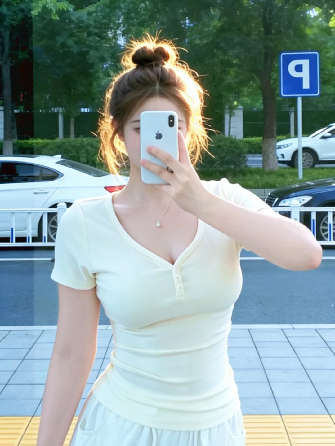 修身上衣 纯色T恤 正肩上衣 正肩t恤 显瘦上衣 温柔纯欲穿搭 V领上衣 上衣推荐夏季 平价短袖