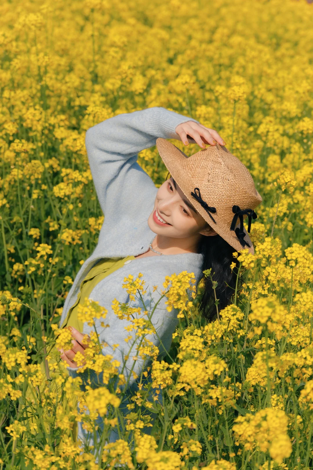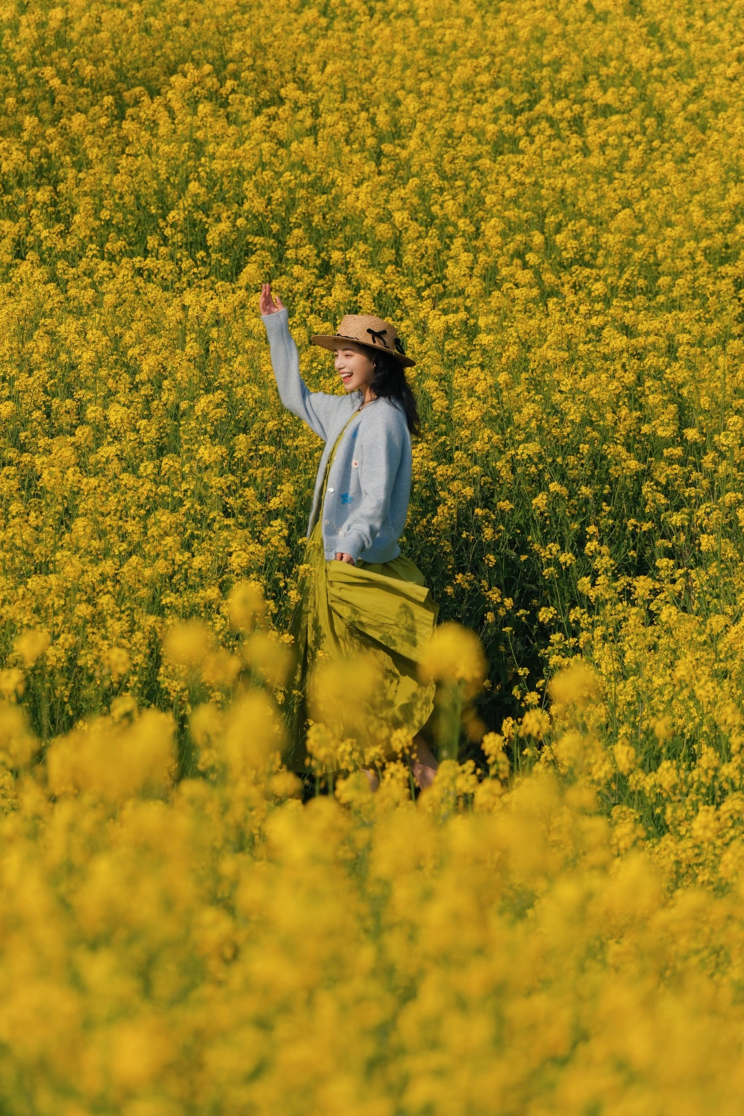 2️⃣今年油菜花田里有两张白色长椅,两个位置拍照都很好看,建议拍横图,会更有氛围感