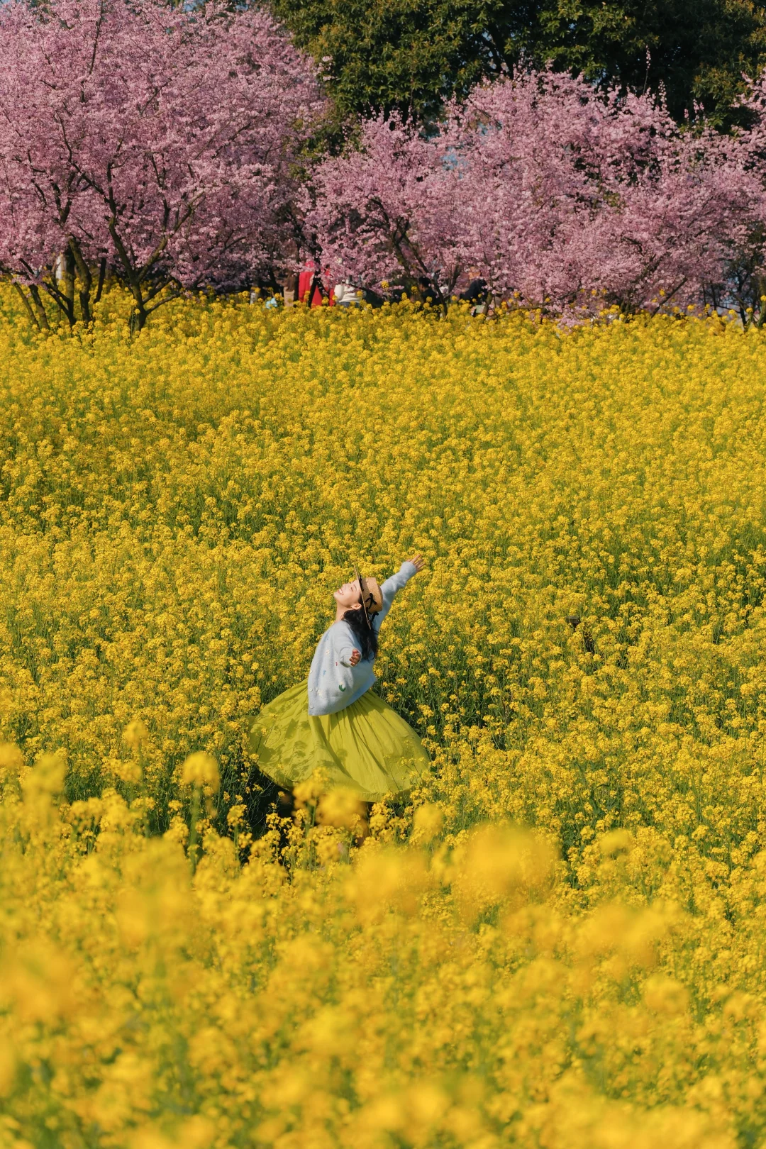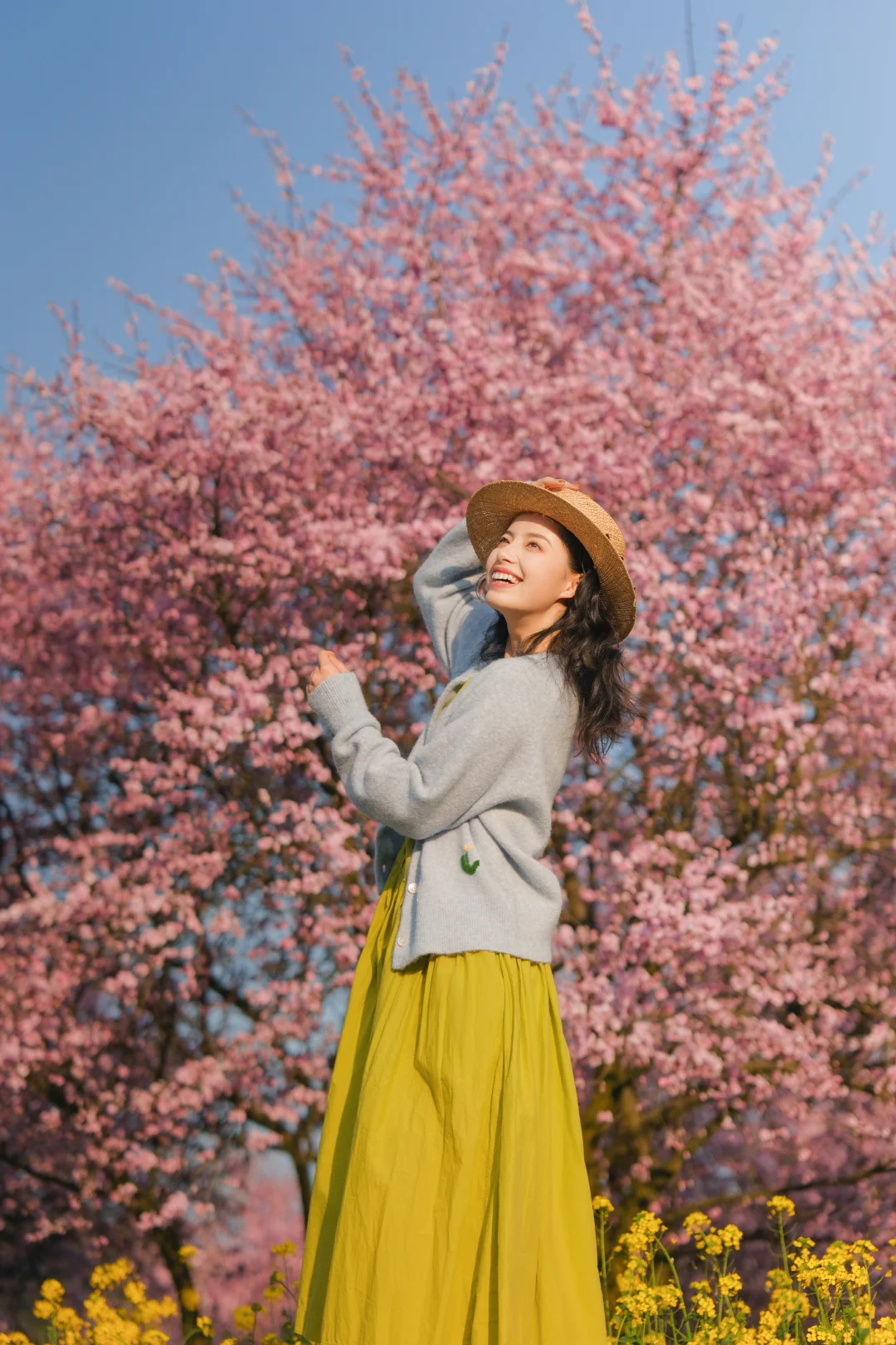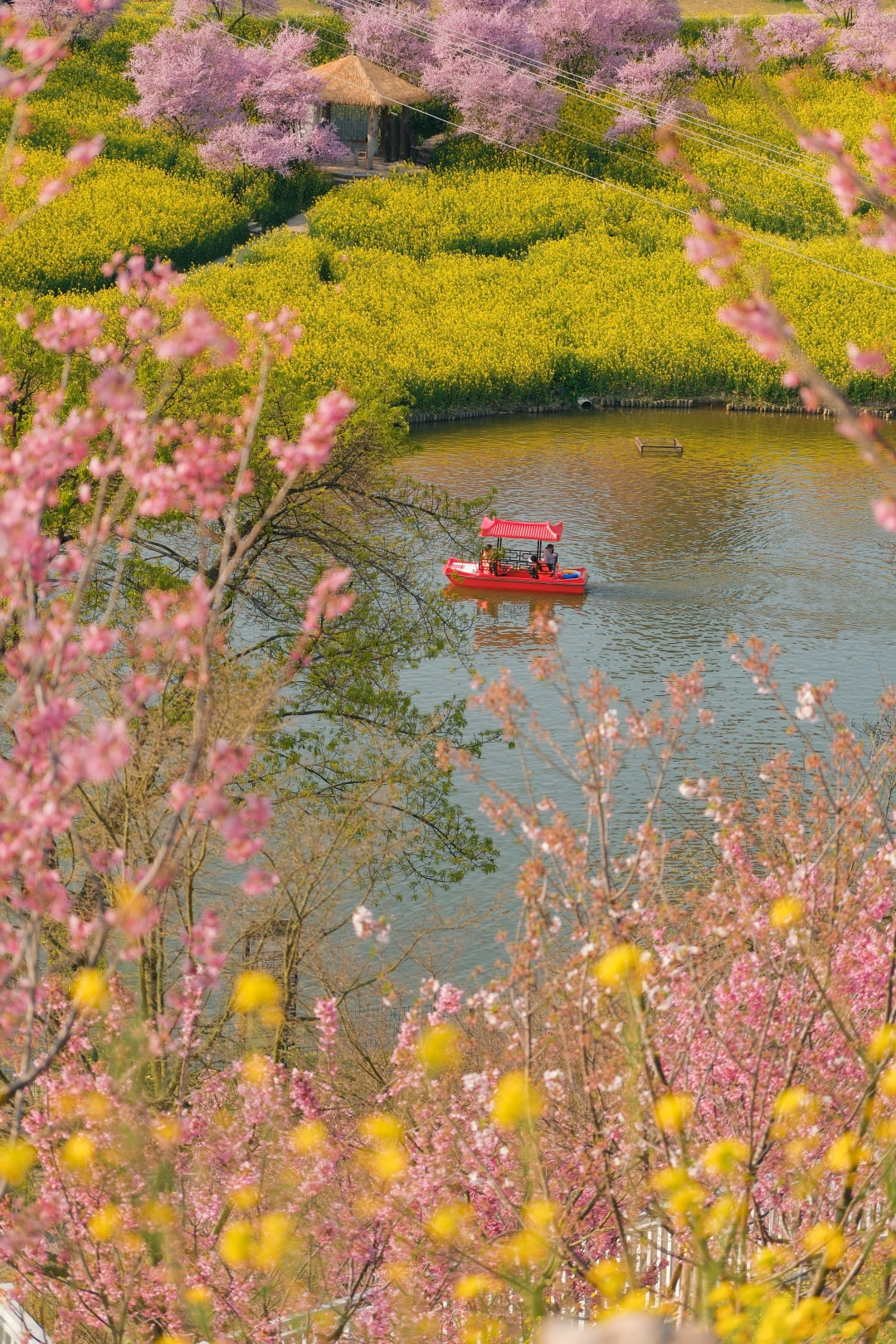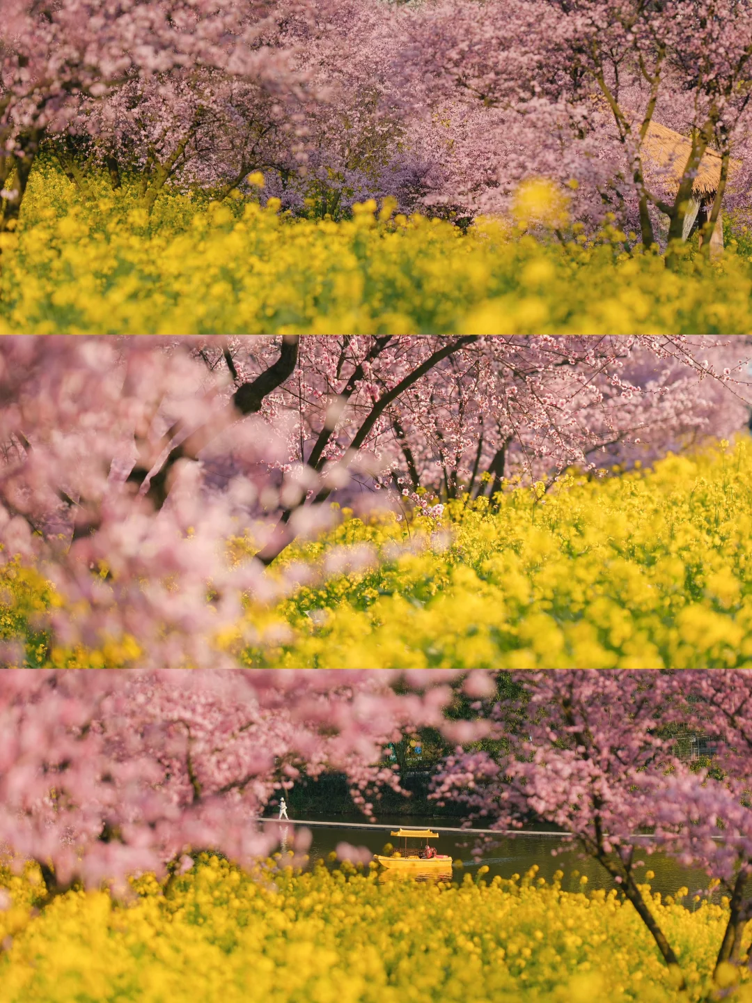 4️⃣油菜花对面的山坡上种的樱花,去拍樱花的朋友建议直接往山上走,山顶亭子下面这条路上的樱花很好拍,下午去建议逆光拍摄,氛围感更强