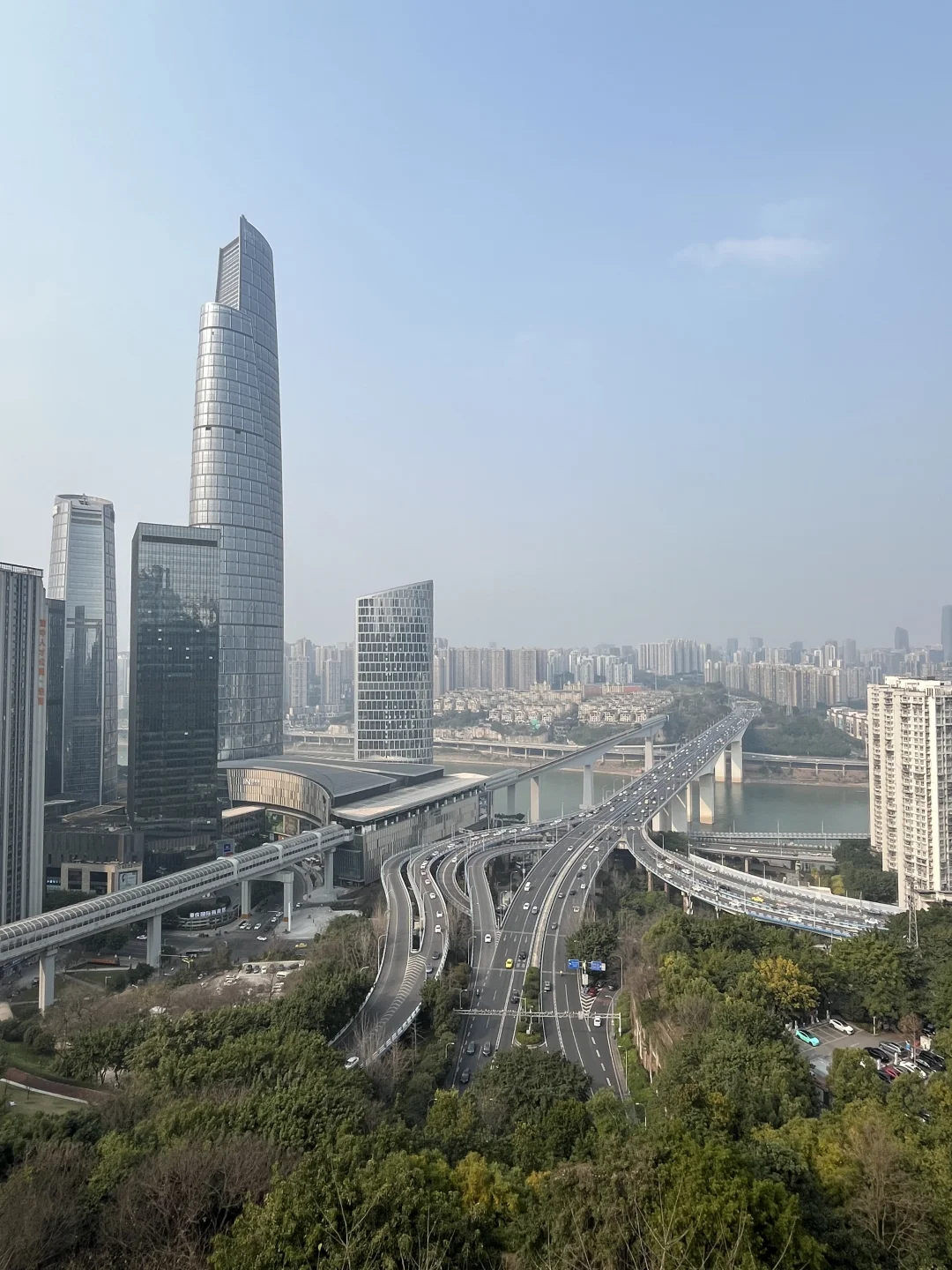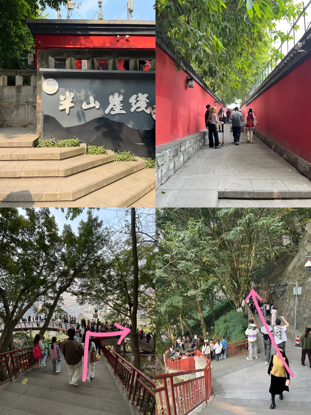 1⃣️轻轨1/2号线到达【大坪站】,从【5号口】导航【半山崖线入口】,全程下坡路 2⃣️公交车471到达【九坑子】,导航【半山崖线入口】,步行少 - 🧭路线指南‼️ 从【红墙】进入半山崖线,走3分钟就可以看到【悬崖栈道】,这可以看到复杂的立交桥和穿梭的车流;右边走就是俯瞰【开往春天的列车】,左边走可以看到【浮图雕墙】,这条线路有很多分叉路口,一直走还可以走到鹅岭公园,很适合春天散步