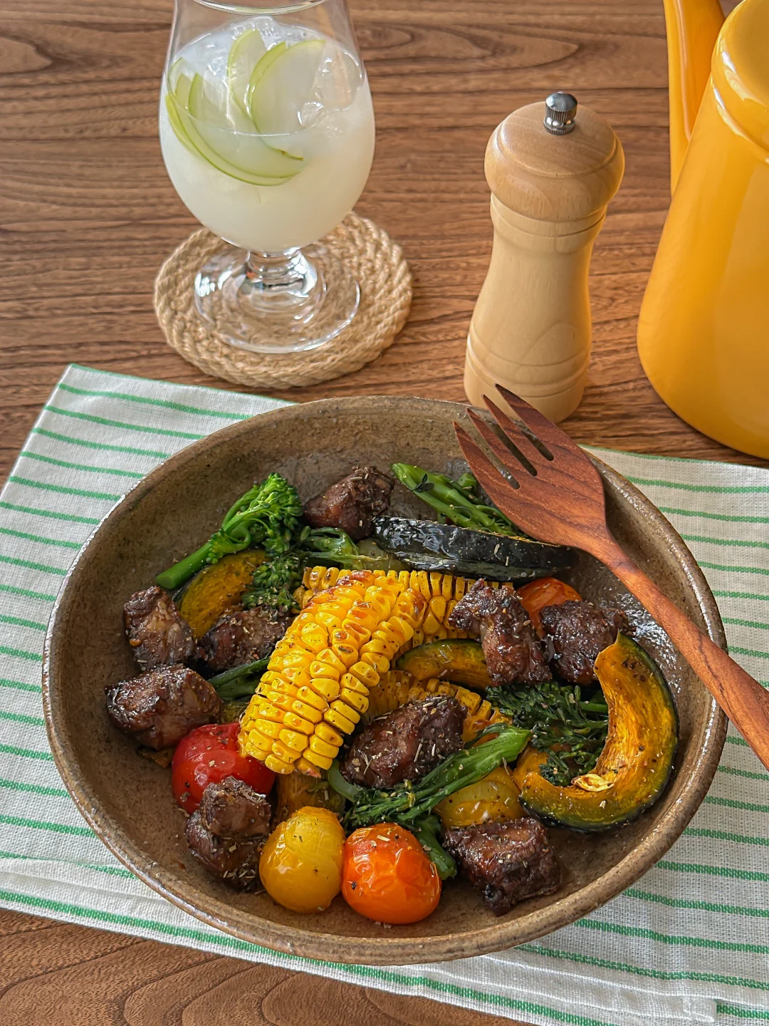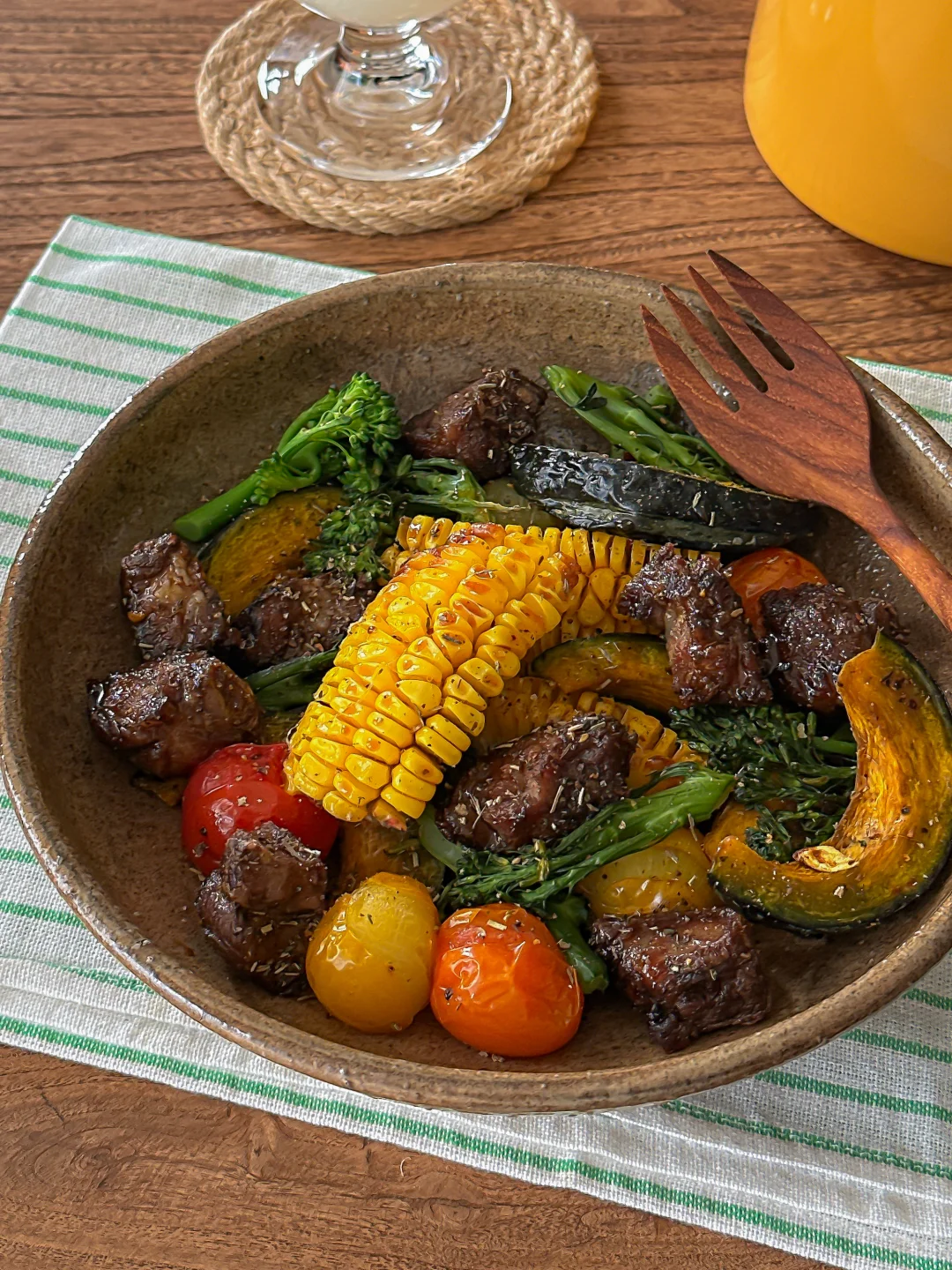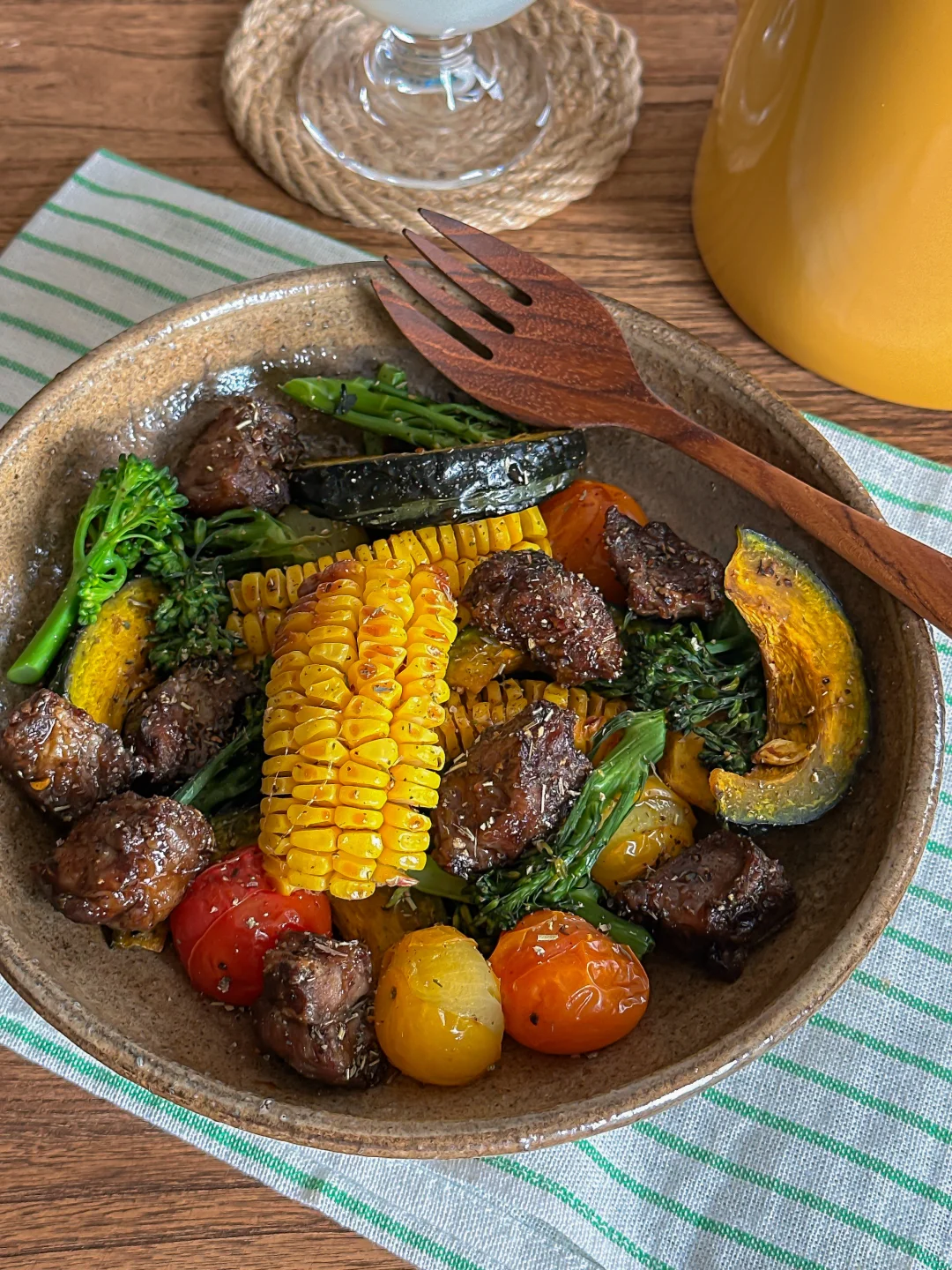 好吃好喜欢😋 十字花科蔬菜🥦 焦香的玉米都是刷脂好搭子! hin喜欢南瓜烤完糯糯的口感 ~ 还有外焦里嫩的牛肋条 搭配小番茄的酸甜清爽又解腻 有蔬菜🥬 蛋白质 营养全面 空气炸锅一锅出! 今晚快做起来吧