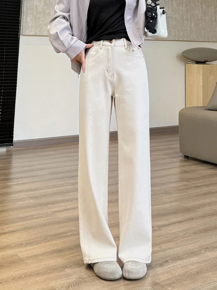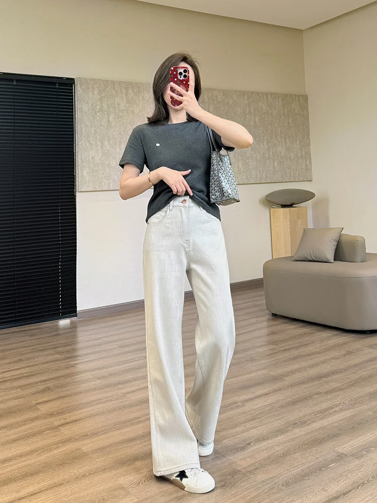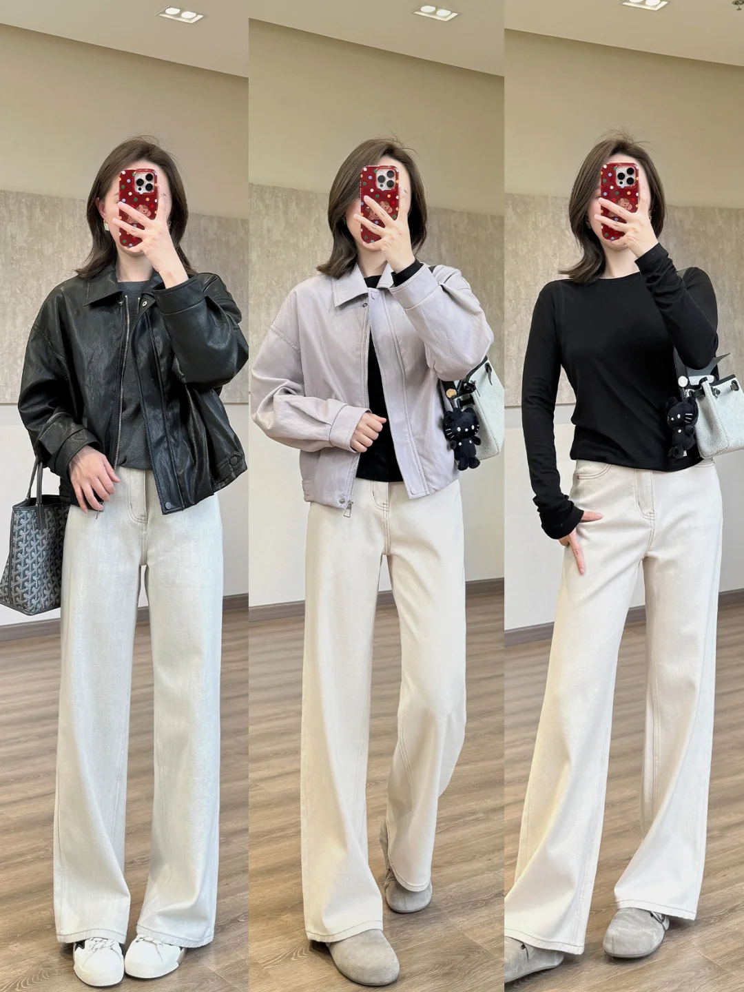 太爱韩系松弛感了!白色系~好搭又显瘦! 不紧绷的牛仔裤版型很柔软舒服~爱穿!! 158小个子穿搭 梨形身材穿搭 早春穿搭 白牛 牛仔裤 白色直筒裤 皮衣搭配 显瘦穿搭 百搭神裤 裤子种草