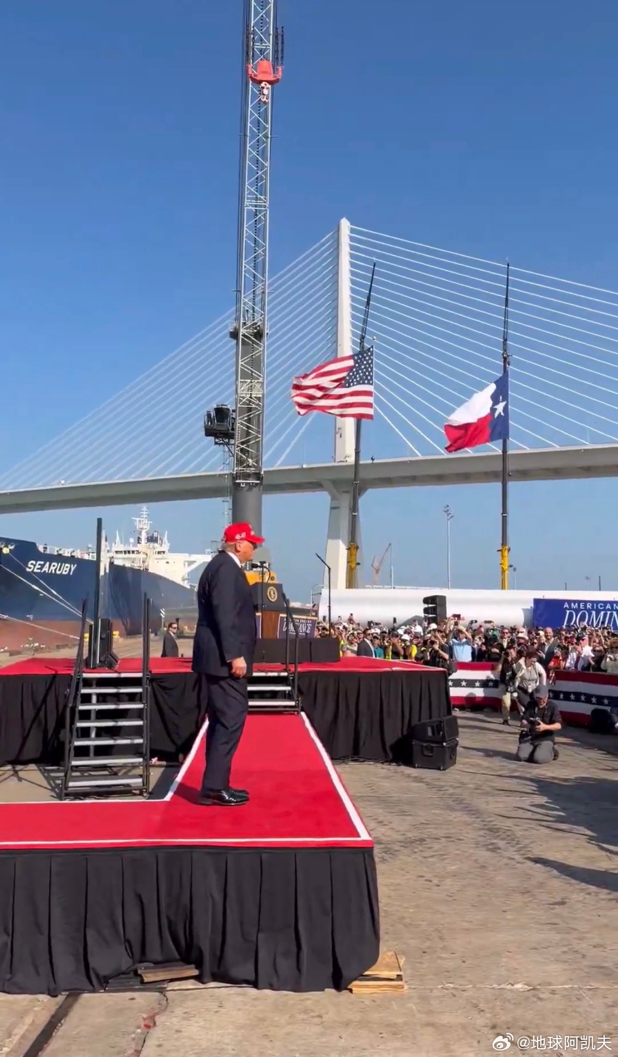 79岁的唐纳德·特朗普身着全套西装,在德克萨斯州科珀斯克里斯蒂市80华氏度(约27摄氏度)的阳光下,站着发表了一个多小时的演讲。