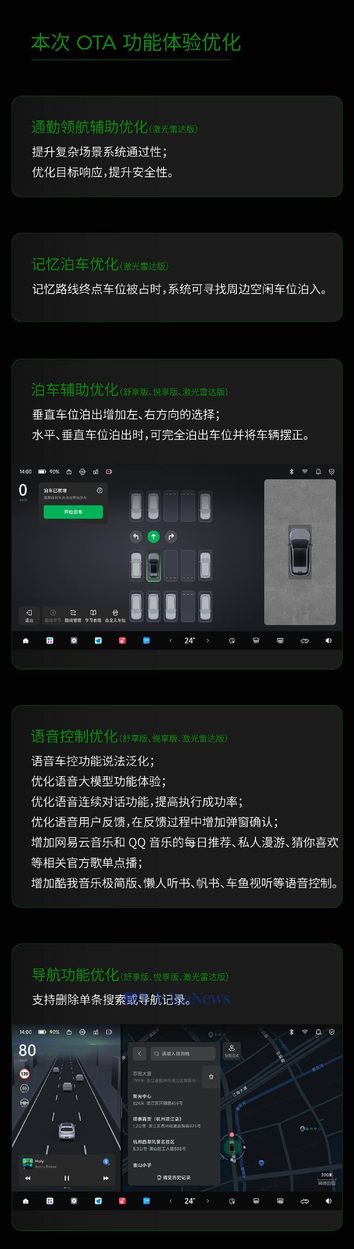据介绍,本次OTA带来7项新增功能和10项体验优化,包括城市领航辅助、超级省电模式、360轮毂辅助等。