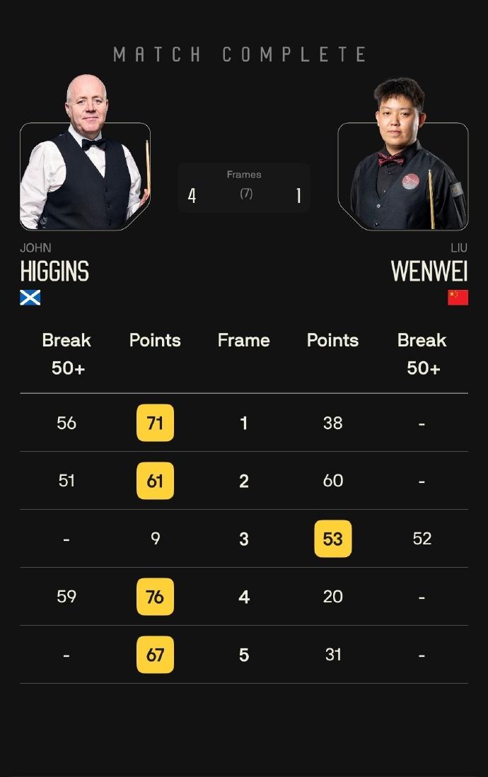 当着全世界的面,被裁判直接指着鼻子让“回到你的座位”,中国21岁的斯诺克新秀刘文炜,对阵五次世锦赛冠军希金斯,这笔学费交得挺尴尬。 21岁的年纪,在斯诺克职业赛场还属于绝对的新人,刘文炜当时的世界排名仅326位,职业生涯刚起步不久,参赛经验屈指可数,大多是参加低级别挑战赛,能站上和希金斯同场竞技的舞台,本身就已经是突破。 而希金斯则完全不同,手握5次世锦赛冠军、3次英锦赛冠军,世界排名常年稳居前10,职业生涯斩获31个排名赛冠军,打球沉稳老练,对赛事规则的把控更是炉火纯青,哪怕是细微的礼仪细节,都挑不出一点毛病。 那次被裁判警告,并非刘文炜故意违规,更多是年轻气盛加缺乏大赛经验。据悉,当时刘文炜在一次得分后,过于激动,没等裁判示意,就擅自起身走动,甚至靠近球台边缘,影响了裁判的判罚视线,这才被裁判当场严厉提醒。 斯诺克是一项极其注重礼仪和规则的运动,国际赛事的裁判向来铁面无私,不管你是新秀还是老将,只要触碰规则红线,都会被当场制止,哪怕是丁俊晖刚出道时,也有过类似的经历。 丁俊晖18岁那年,第一次参加斯诺克英锦赛,对阵当时的世界排名第5的亨德利,也曾因为出杆超时、站位不当,被裁判当场警告,当时镜头给到他,满脸通红,和现在的刘文炜一样尴尬。 有数据显示,斯诺克新秀在首次对阵世界前10选手时,违规被警告的概率高达62%,大多都是因为紧张、对大赛规则不熟悉,或是情绪控制不当,这些都是新人成长路上绕不开的坎。 国际台联曾公布过一组数据,近五年来,中国斯诺克新秀在国际赛事中,因规则不熟悉被裁判警告的案例有47起,其中80%都是25岁以下的年轻选手,刘文炜的情况,只是其中最受关注的一起,毕竟对手是希金斯,赛事关注度极高,被全世界观众看在眼里,尴尬程度自然翻倍。 而希金斯职业生涯中,仅在刚出道时被裁判警告过1次,之后几十年,从未再因规则问题被提醒,这份差距,就是经验和心态的体现。 很多人觉得,被裁判指着鼻子警告太没面子,但对斯诺克新秀来说,这样的“尴尬”其实是宝贵的教训。斯诺克赛事不仅比球技,更比心态和礼仪,哪怕你球打得再好,不遵守规则、不懂赛场礼仪,也无法在国际舞台上站稳脚跟。 就像之前中国另一位新秀吴宜泽,在对阵墨菲时,因为擅自擦拭球台被警告,之后他刻意加强礼仪训练,再参赛时,再也没有出现过类似问题,球技也随之稳步提升。 刘文炜这场比赛,最终以大败告终,不仅输了球,还留下了被裁判警告的尴尬瞬间,但这笔“学费”交得并不亏。对阵希金斯这样的顶尖选手,本身就是一次难得的学习机会,而被裁判警告,更是让他深刻意识到大赛规则和礼仪的重要性。 对21岁的他来说,现在的尴尬和失利,都是未来成长的铺垫,毕竟,没有哪个顶尖选手,是不经历几次尴尬、不摔几次跟头,就能一路顺遂站上巅峰的,这份尴尬的经历,终将成为他职业生涯中一笔宝贵的财富。