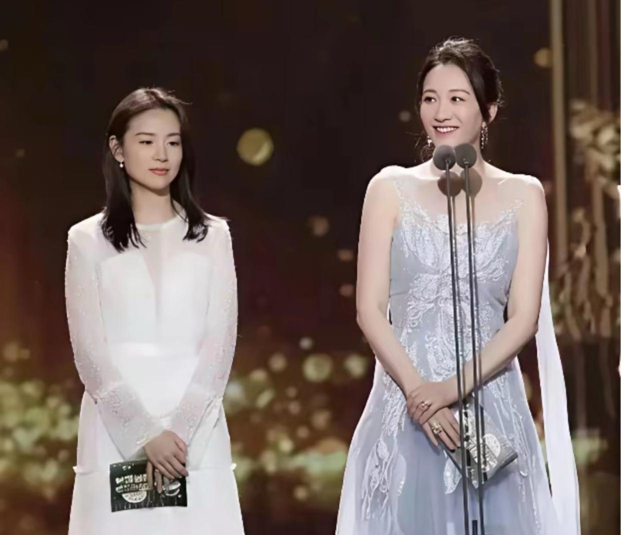 是谁说的? 董洁只需要淡淡的站在那里她就赢了, 她身边可是合影杀手李小冉啊 好吧我信了。 李小冉因为高挑的身材白得发光的皮肤, 都知道她是出了名的冷白皮, 合影占尽优势。 可是董洁这颗头真的是太特殊了, 还有她淡淡的百合花气质, 赢得毫不费力。
