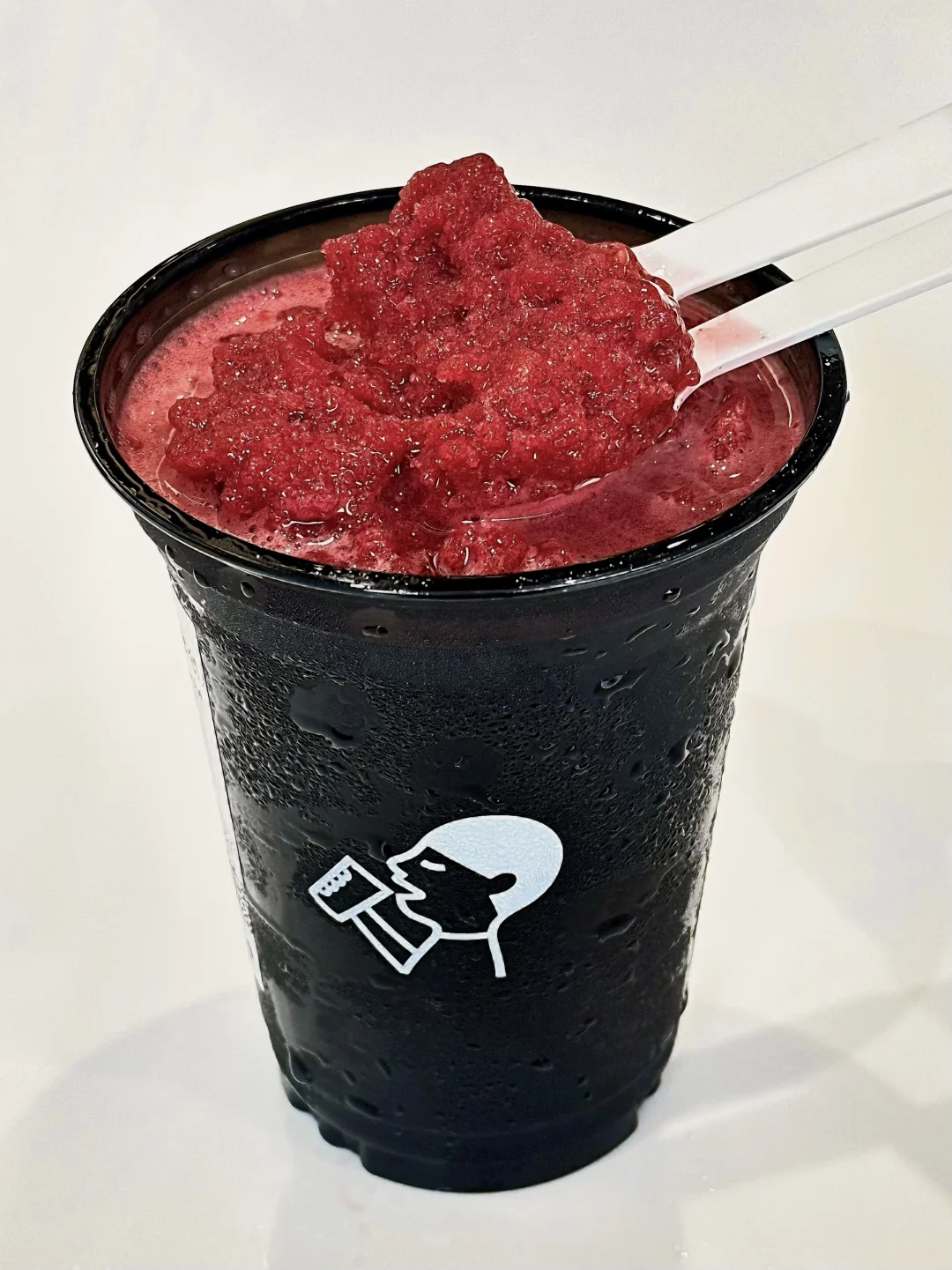因为是沙冰款,酸酸甜甜超级清爽的!!喉咙瞬间被滋润的救赎感谁懂一下....还能吃到草莓+桑葚的果肉,果肉没有说特别多,但是胜在比较新鲜,也是比较自然的酸甜的果香~