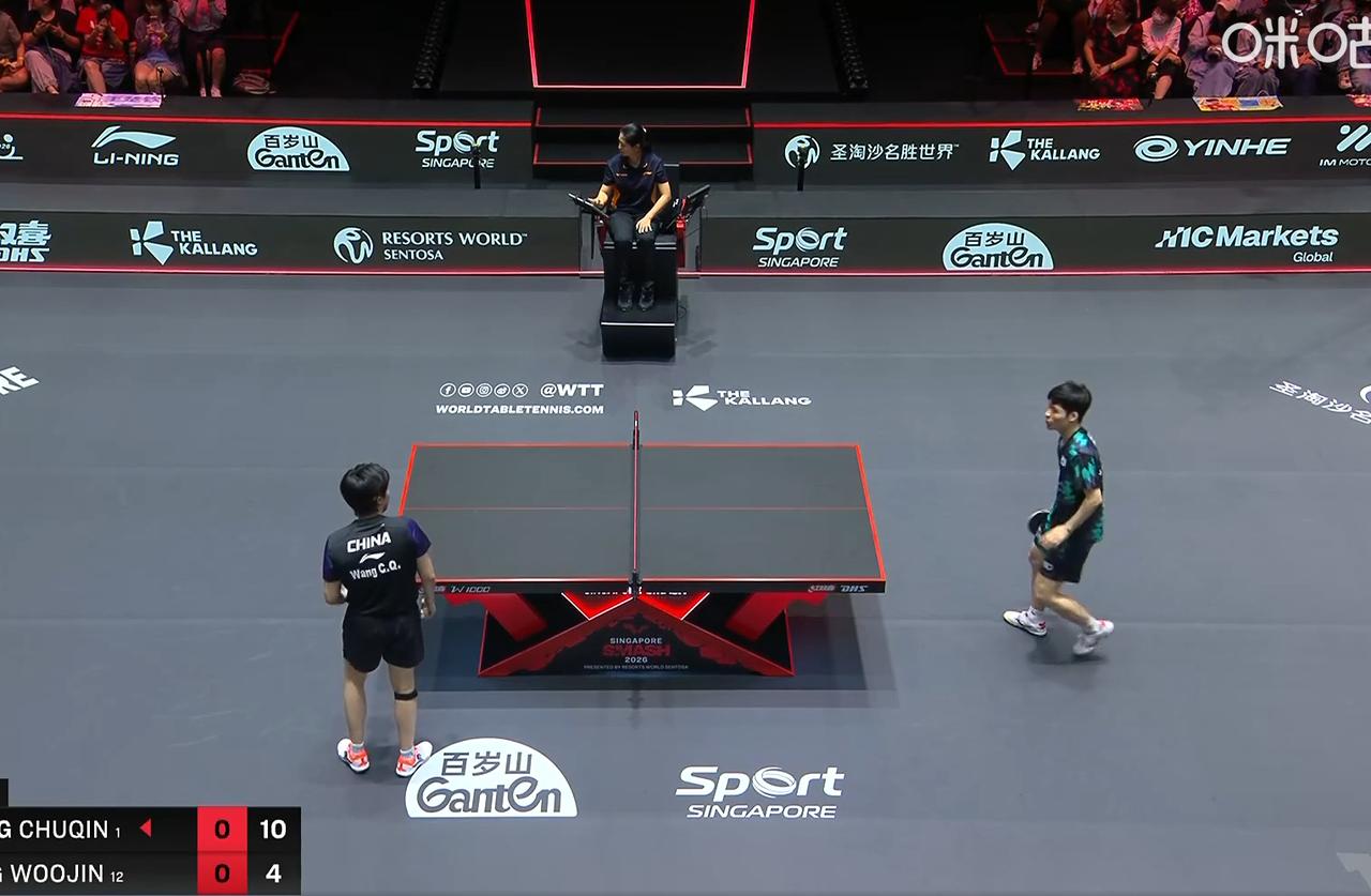 张禹珍只喊了一声,就被王楚钦打哑了! 开局王楚钦限制住了张禹珍正手, 3:1开局 王楚钦打了一个爆冲, 没上台, 按照我对他的了解, 他应该还要打爆冲。 果然又一个7:3领先时, 又一个爆冲失误。 大头不服, 紧接着又拉了一个正手, 成功,哈哈 紧接着又一个爆冲, 气势出来了! 王楚钦以前采访过, 说我不是倔, 这就是我的风格。哈哈 王楚钦10;4拿到局点, 11:6拿下首局