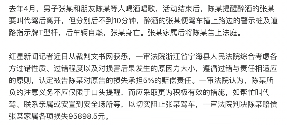 男子劝朋友别醉驾走后对方车祸身亡 以后跟开车来的朋友喝酒要注意了,不能口头提醒,得帮人叫好代驾,把人送上车再走......