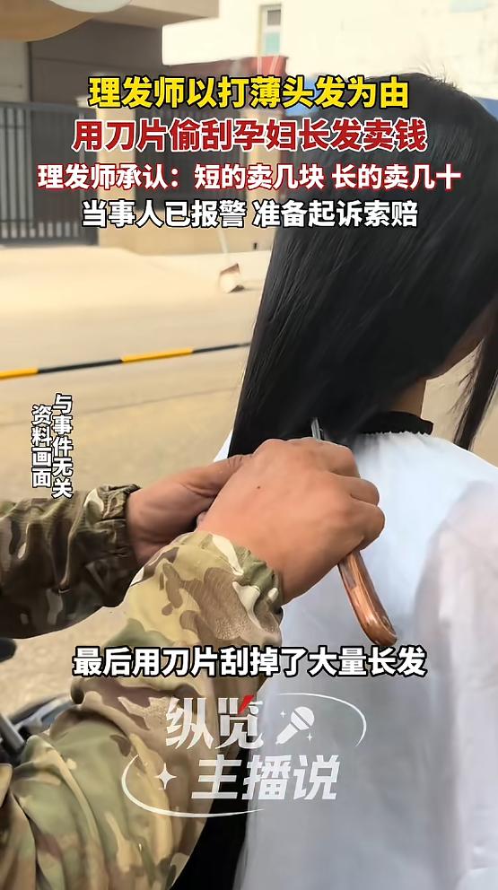 “太过分了!”近日,河南,一孕妇去理发店,想做头发软化,理发师却说孕期不适合,主动提议帮她打薄修型,等做完头发,女子就发现地上掉的头发比头上剩的还多,后来才知道理发师偷偷刮发,想要拿去卖钱!网友:毫无底线! 已有五月身孕的张女士,身姿略显臃肿。她轻托着圆滚滚的肚子,步履缓慢却坚定地迈进那家她曾无数次光顾过的理发店。她只想做个简单的软化,让养了整整五年的长发更顺滑一些。谁能想到,这一进门,就踏进了一个精心设计的陷阱。 那天她熟悉的理发师不在,接待她的是个从没见过的年轻男人。又是殷勤地端茶递水,又是关切地嘘寒问暖,那满腔的热忱洋溢而出,恰似与失散多年的亲人久别重逢,热络之情扑面而来。 张女士当时还纳闷:这服务态度,也太好了点吧? 很快,这份"热情"就露出了獠牙。"姐,你怀着孕呢,软化用的都是化学药水,对宝宝不好啊。"理发师一脸关切,眉头皱得能夹死苍蝇,"我建议你就简单打薄一下,清爽好打理,还不伤身体。" 听听,多贴心!多专业!多为客户着想! 张女士被这番话说得心里暖洋洋的,想都没想就点了头。她怎会知晓,自己轻轻一点头的瞬间,竟如同主动将脖颈置于他人利刃之下,丝毫未察即将降临的危机。 当剪刀落下的刹那,张女士便敏锐地察觉出异样。那一瞬间,一种不安之感如影随形,让她心中顿生警觉。 那把冰冷的刮刀贴着头皮游走,不是在修剪碎发,而是专挑长发最浓密的地方下手。一刀一刀,又准又狠,像是在收割庄稼。 "你这是在干嘛?怎么贴着头皮刮?"张女士忍不住问。"姐,刮刀效果更整齐,放心吧。"理发师头都没抬,语气轻飘飘的。张女士将信将疑,但人都坐在椅子上了,也不好中途叫停。她只能眼睁睁看着镜子里的自己,头发一缕一缕地往下掉。 等理发结束,张女士低头一看,整个人都傻了。地上的头发堆成了小山,黑压压一片,目测比她脑袋上剩下的还要多!更诡异的是,这些落发长短出奇地一致,根本不是打薄后该有的参差碎发。 她心中蓦然一紧,好似有颗石子投入心湖。下意识地掏出手机,对准地面,“咔嚓”几声,几张照片便被定格。 回到家,张女士习惯性地扎马尾。这一扎,眼泪差点掉下来原本一只手都握不住的粗马尾,现在细得可怜,手指轻轻一圈就能握住。 五年啊!整整五年的心血!她反复思忖,愈觉此事蹊跷。心中疑云渐起,便将照片发予从事美发行业的弟弟,期望从他那里寻得一丝端倪。弟弟一看,当场就炸了:"姐,你被'偷发'了。正常打薄谁会贴着头皮用长刮刀?那是专门为了收长头发卖钱的损招。" 张女士气得浑身发抖,当即杀回理发店。这一次,她终于注意到了门边那张之前从没留意过的告示"高价回收长发"。 好家伙,原来这就是一条龙服务:前脚从客户头上"偷"下来,后脚就能卖钱变现!面对张女士的质问,理发师的态度来了个一百八十度大转弯。之前那副热情周到的嘴脸瞬间消失,取而代之的是一副死猪不怕开水烫的无赖相。 "长发能卖几十块钱,短的就几块,这本就是店里的生意。"听听这话!简直不要脸到了极点!张女士据理力争,对方非但不道歉,还继续拿"为你好"当挡箭牌,坚称这是为了孕妇健康进行的"正常操作"。 正常操作?骗人偷发叫正常操作?张女士忍无可忍,当场报警。眼看事情闹大,理发师终于撕下了最后一层伪装,露出了骨子里的狰狞:"店要是倒闭了,有你好受的。"好一个威胁!好一个恐吓!一起消费纠纷,硬生生被这句话推向了更恶劣的境地。 说实话,这件事的性质已经不是什么"服务态度差"或者"技术不过关"的问题了。这是赤裸裸的欺诈!是明目张胆的洗劫! 根据《消费者权益保护法》,消费者享有自主选择权。张女士进店是要做软化的,结果被人用话术忽悠着剪了头发,还被偷偷"收割"了长发拿去卖钱。这叫什么?这叫利用信息差,把客户的身体发肤变成自己的私产! 一个服务行业的从业者,把"关怀"包装成诱饵,把"建议"异化成收割工具。他所舍弃的,岂止是一桩生意?那背后或许是无数的机遇、人脉与未来的可能,在这一丢之间,失去的兴许是难以估量的宝贵财富。丢弃的,乃是为人处世最根本的底线。这底线,是道德的基石,是良知的坚守,一旦丧失,便如大厦倾颓,再难寻回心灵的安稳与纯粹。 对张女士来说,头发可以再留,但那份被暴力撕碎的信任感,恐怕很难再长回来了。而对于我们每一个普通消费者来说,这把刮刀就是一记响亮的警钟:那些过分热情的嘘寒问暖,那些满口"为你好"的贴心建议,背后很可能正闪烁着算计的精光。