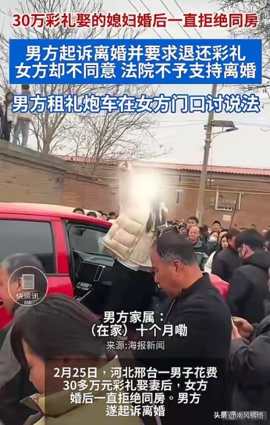 退伍军人32万彩礼被骗婚,开车堵在未婚妻家门口要说法,未婚妻当场拿出婚姻法,居然是合法合规的。一想到哪个女的恐怕最后要吞一半彩礼就不高兴。 最近几天,一个事情,“退伍军人遭到了骗婚”。2024年的时候,河北邢台退伍军人高先生和邻村的李女士闪婚了,高家为了这件事给了差不多32万的彩礼。 结果,都结婚了这么久,太诡异了,一直以来,新娘一直拒绝同房,而且对丈夫拳打脚踢。才结婚没过几天,女方就收拾东西回娘家了,而且是长期的没有回来,电话都被拉黑了。 在忍耐了十个月后,高先生就想着要协议离婚想要回彩礼的钱,结果没想到啊,直接遭到了女方一家子人羞辱而且还拒绝了。 无奈之下,他只好来靠法律来要个说法了。结果偏偏,一审的时候法院以他们“感情未破裂”为理由居然拒绝了,直接就驳回了离婚请求。更夸张的是,女方在法庭上还反咬了一口,不仅否认收取彩礼,还拿出抑郁症诊断书,反指男方存在家暴和精神压迫。 现在面对法律救济的受阻,高先生和他的家人被迫转了方向,把事情的经过发在了网上,通过直播的方式证明自己的清白,然后揭露女方,怀疑女方一家子人是“借婚敛财”的动机。 之后堂姐直接开车到女方的家门口要说法,想用舆论的方式逼他们就范。 这个事情一出来,我都忍不了了,又一个骗婚的故事,婚姻法就不能改一改吗?现在都彩礼乱就不用说了,现在又出现了婚姻上的诚信和司法上面的公正不公平。 什么叫“吃绝户”这就是了,婚姻上面,当老实人的退路被“冷静期”和“感情未破裂”堵死,这样的事情留给我们的,不仅仅是愤怒,而是对法律如何守护善良的深刻拷问。 这个事情又是不知道要什么时候结束,一想到这个事情,恐怕最后的处理方式就是退一半的彩礼,一想到哪个女的能吞下一半的彩礼就不高兴。