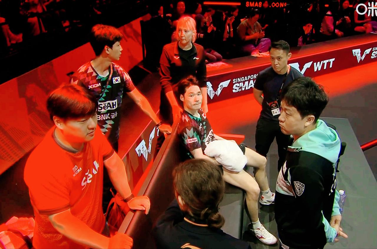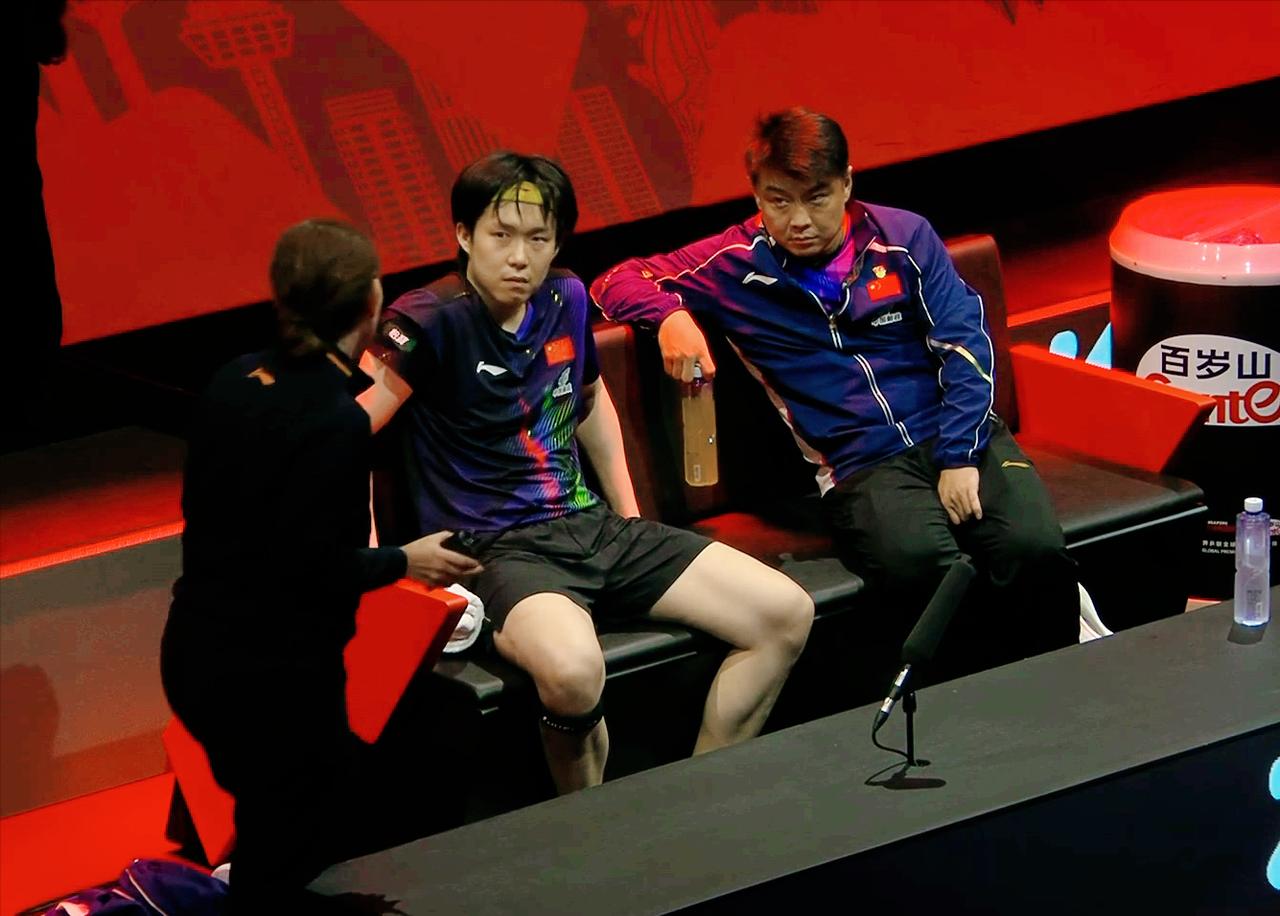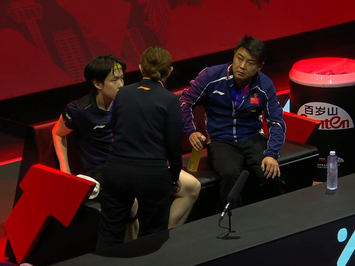 奇葩!张禹珍请求医疗暂停, 理由居然是因为自己被吵的头疼! 从王楚钦眼神中看的出, 他很愤怒。 医疗小组来了, 居然还通过了张禹珍的申请, 连周冠达都说: 张本美和腿疼是真伤着了, 你这头疼, 太少见了。 是不是真头疼, 怎么判定? 不能给张禹珍开这个先例。