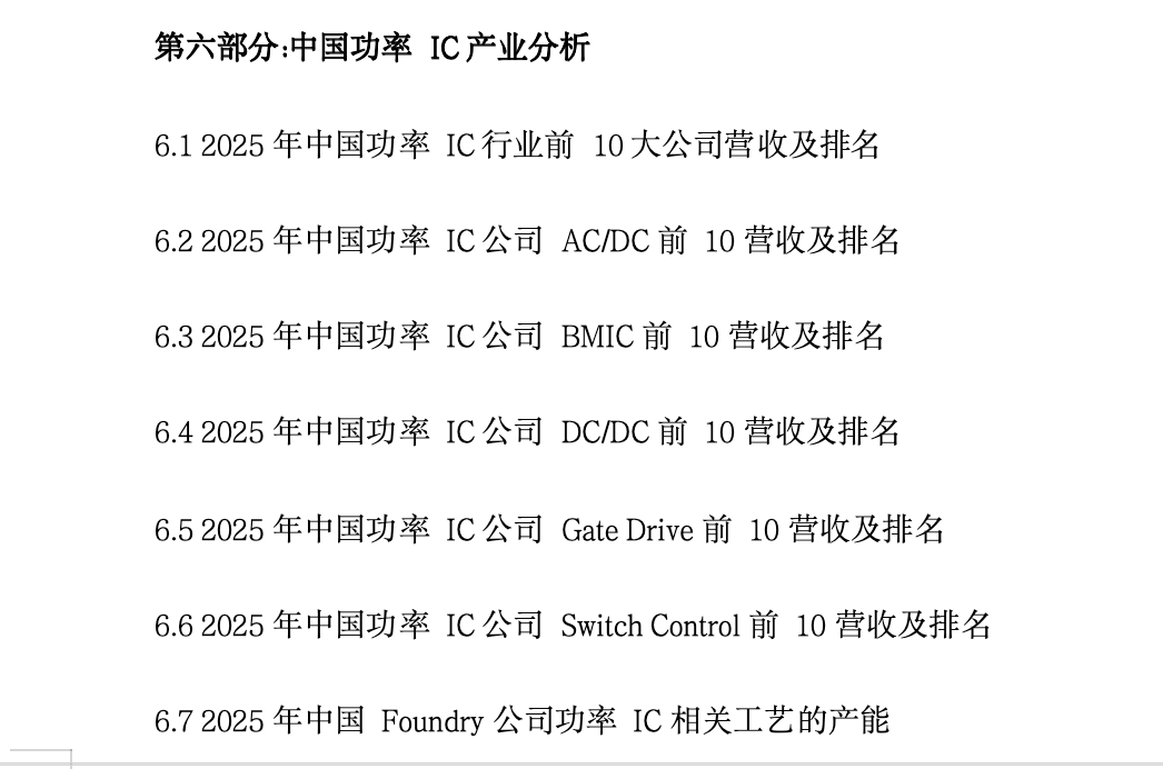🔹《中国功率IC市场年度报告2026》——提供相关重点企业营收及排名,解析国产替代关键窗口期,中国功率IC产业重要驱动因素与产业趋势。