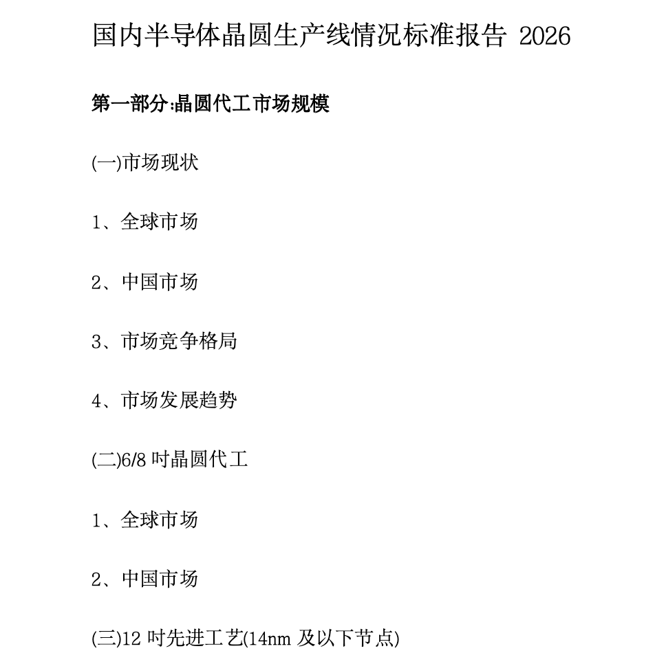 🔹《国内半导体晶圆生产线情况标准报告2026》——独家披露12英寸/8英寸产线实际产能、技术节点与扩产计划,以及分析下游应用市场需求。