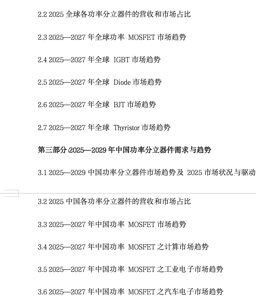 🔹《中国功率分立器件市场年度报告2026》——解析全球功率分立器件未来三到四年产业需求与趋势,分析SiC/GaN产能激增下的供需格局与本土化机遇。