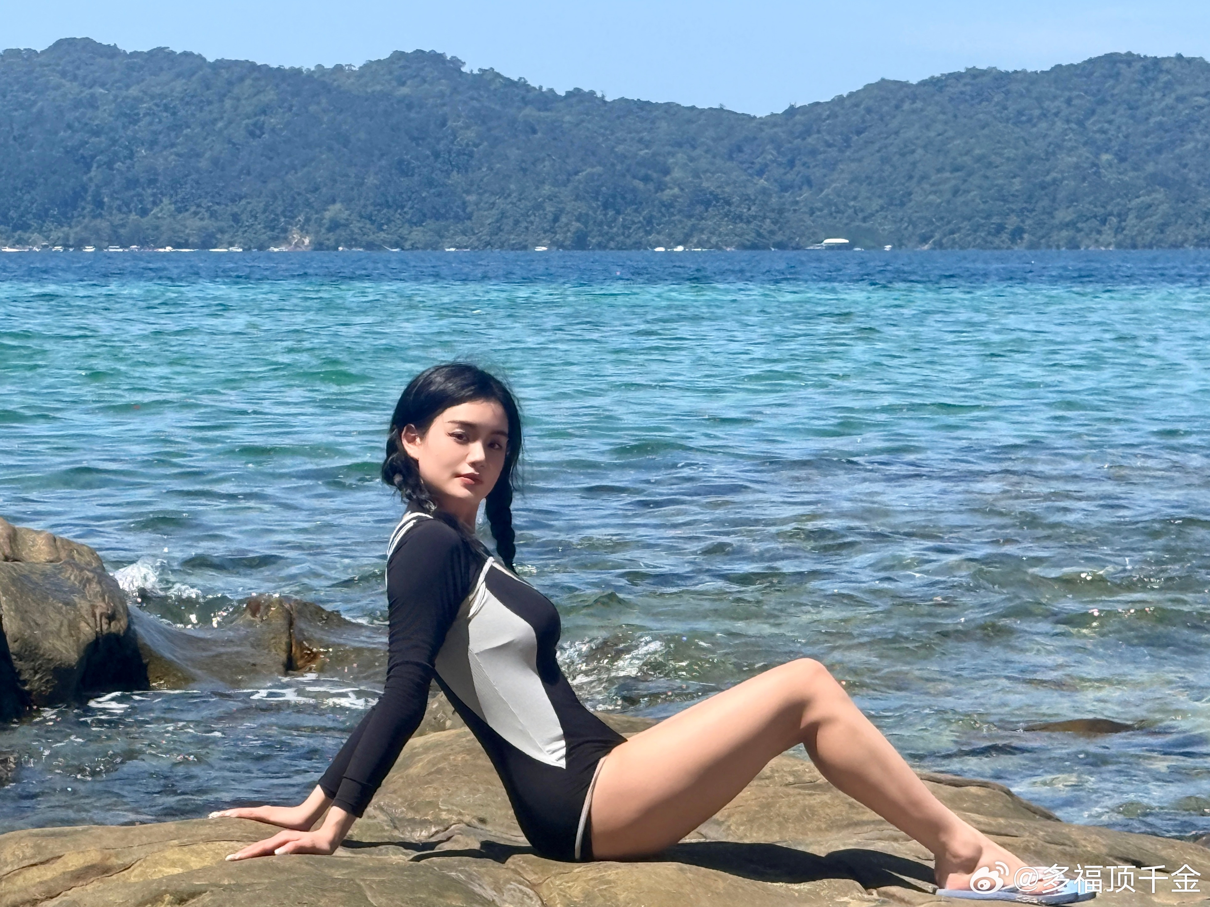 蔡文静趴在沙滩上美图太绝了