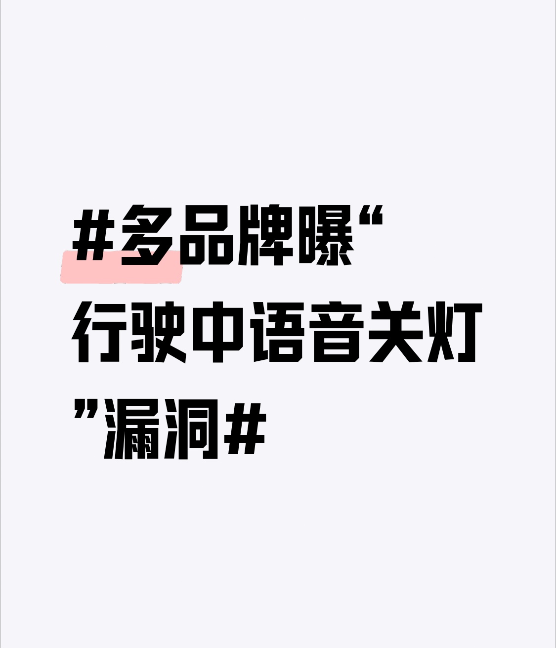 多品牌曝“行驶中语音关灯”漏洞 多品牌“行驶中语音关灯”漏洞太吓人了,简直是高速上的“隐形炸弹”!中汽研报告显示,当车速60km/h、方向盘微调0.8°时,一句“关灯”可能让中控屏闪退3.2秒,车辆偏移车道0.7米。测试中误触发率最高达47%,像蔚来ET5响应延迟超临界值,小米SU7还出现级联故障。