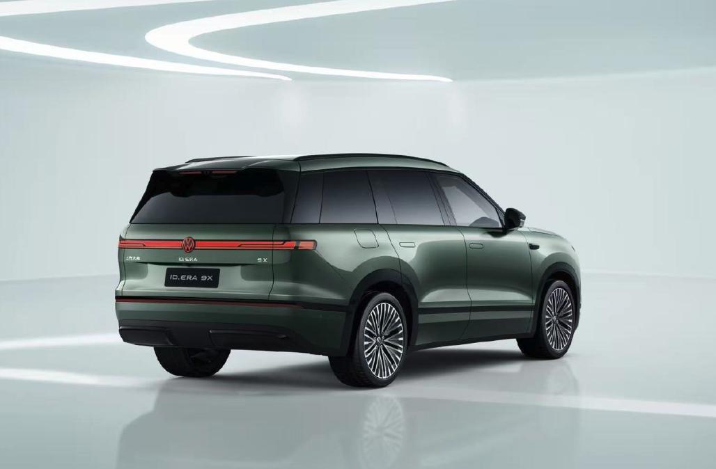 大六座增程SUV上汽大众ID.ERA 9X公布新车色,新车长宽高 5207*1997*1810mm,轴距为3070mm,大六座2+2+2布局,二排为独立座椅设计,二排右侧为零重力座椅,前排设置有双联屏+手机无线充电,动力系统搭载EA211增程器,内置65.2kWh宁德时代增程专用电池,纯电续航超400km,底盘部分提供有双腔空气弹簧,DCC阻尼连续可调减振器,支持后轮转向。【来自懂车帝车友圈】