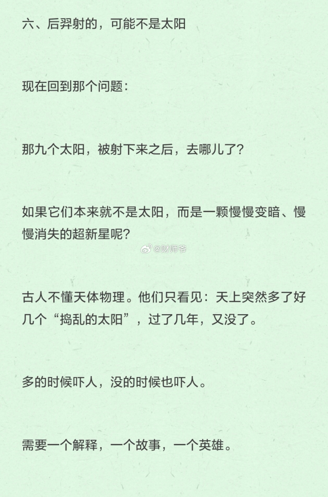 凌家滩等中国多地出土文物上的神秘“八角太阳”符号,考古学家认为可能与上古时期人们看到“超行星爆炸”有关,且亦与“后羿射日”的神话有关。