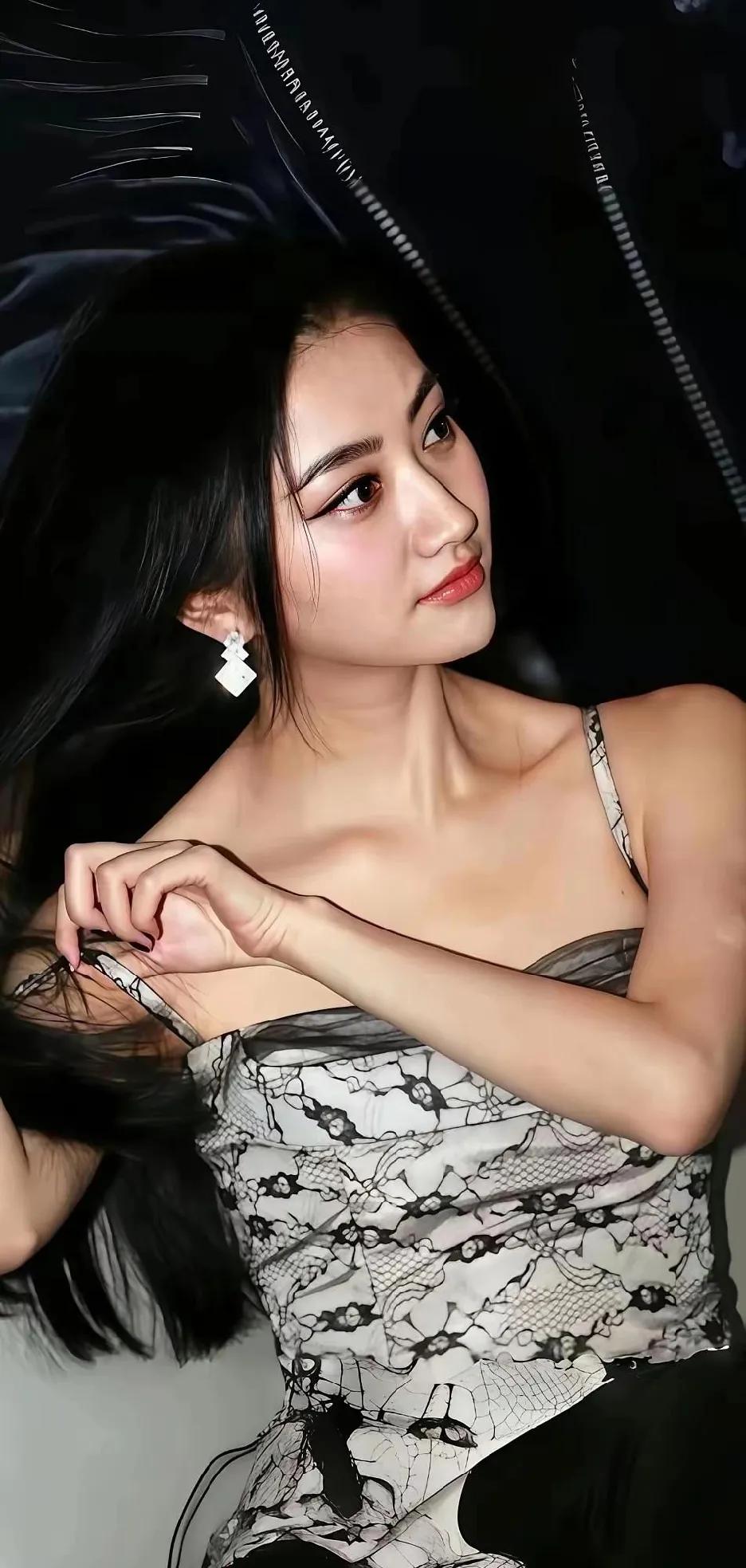景甜这颜值真的太能打了!黑长直+蕾丝吊带裙,又甜又欲,谁看了不心动✨ 景甜 女明
