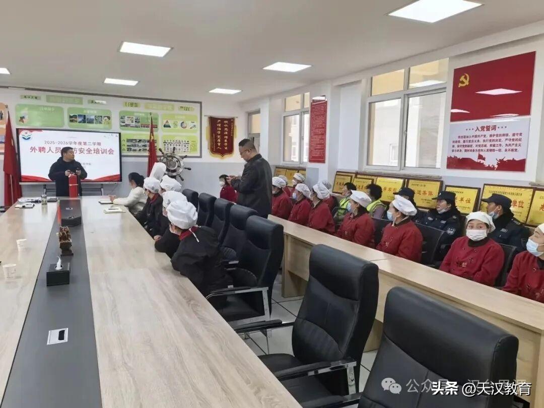 汉台思源实验学校召开2026年春季学期开学工作筹备会 为统筹推进学校后勤、安保等各项工作有序落地,压实工作责任,细化工作举措。2月27日,我校召开2026年春季学期开学工作筹备会。 会议伊始,物业公司负责人客观分析了当前存在的短板和不足,并结合2026年春季学期学校工作重点,汇报了具体的工作 计划。 学校安保处针对校园安全隐患排查、食品安全管控、消防应急演练等重点工作,提出要健全闭环管理机制,守住校园安全底线;总务处就开学前的校园设施维护维修、物资保障、环境优化、校园餐等工作,表态将全力做好后勤服务支撑,为教育教学保驾护航。 田渭潮副校长强调,春季学期是教学冲刺、成果巩固、安全防控的关键阶段,全体后勤及安保人员要秉持马年奋进精神 ,抓实抓细各项工作。重点强化食品安全、消防安全等工作,切实保障师生人身安全 , 要优化后勤服务,细化服务举措,提升服务质量 ,强化部门协同,形成工作合力,确保各项工作落地见效。 海波校长做总结讲话,他指出,学校后勤及安保工作任务繁重、责任重大,全体参会人员要提高政治站位,统一思想认识,切实把思想和行动统一到学校的部署要求上来。要坚持问题导向,补齐工作短板,以务实的作风、创新的举措,扎实推进各项工作;要强化责任担当,主动履职尽责,发挥“关键少数”的表率引领作用,带动全体 后勤及安保人员真抓实干;要聚焦目标任务,细化工作台账,明确时间节点,确保各项工作有序推进,切实交出 2026年春季 学期的圆满答卷。 会后,全体后勤及安保人员进行了食品安全和消防安全专题培训。