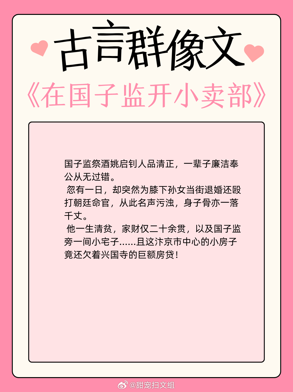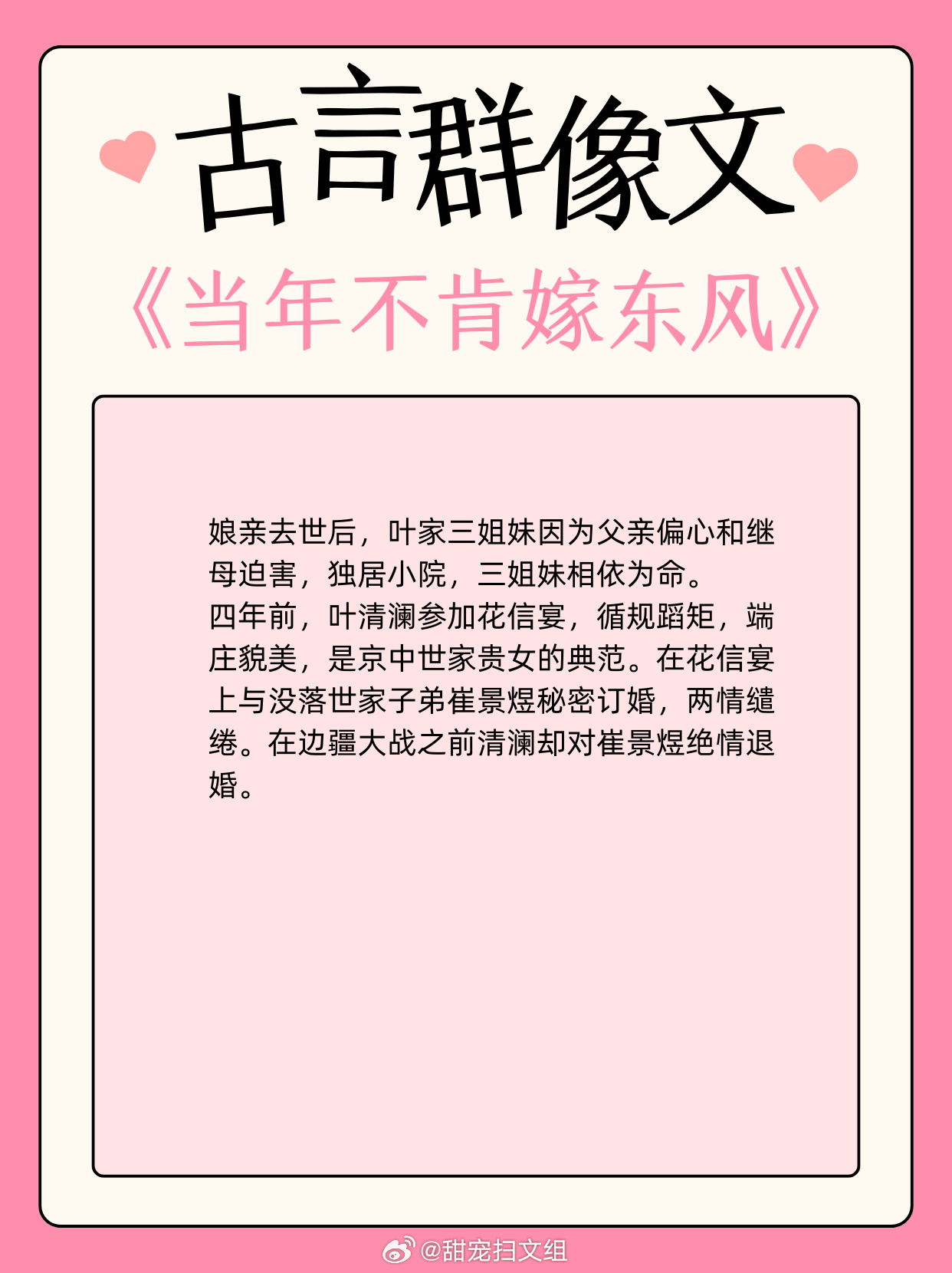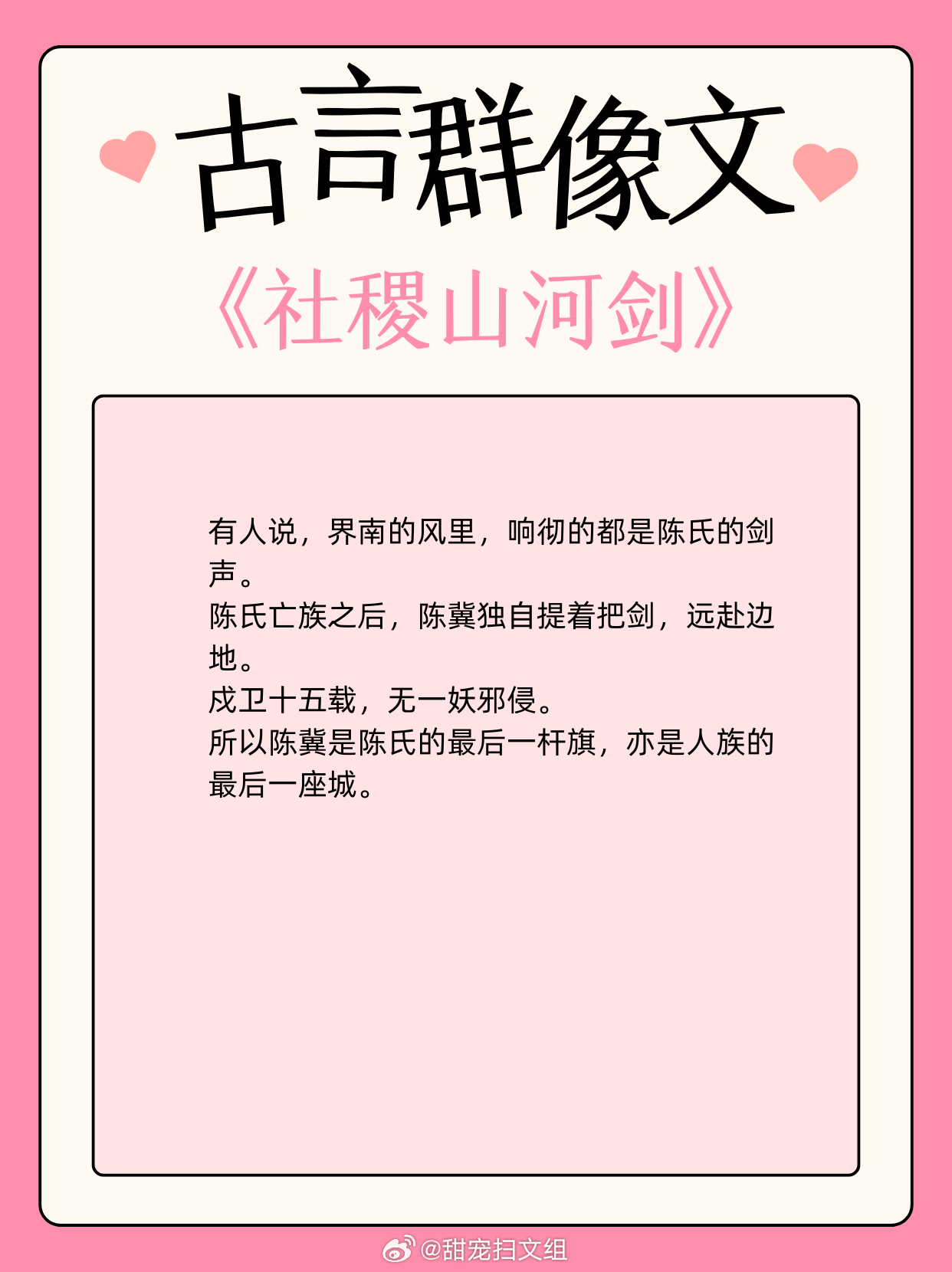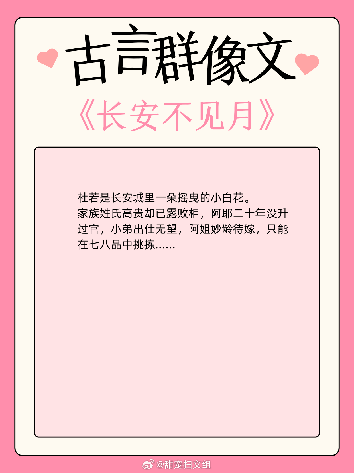古言群像文,待我执剑,肃清妖境!1、《社稷山河剑》作者:退戈2、《在国子监开小卖部》作者:松雪酥3、《当年不肯嫁东风》作者:明月倾4、《在北宋当名医》作者:爱吃咸蛋黄5、《北朝纪事》作者:绿梅枇杷6、《全家穿秦后,从零开始养始皇》作者:袂浅7、《天成记事》作者:素光同8、《长安不见月 》作者:青衣呀9、《盛世为聘》作者:秦皇兜兜转转还是这些小说好看 这小说真的超绝