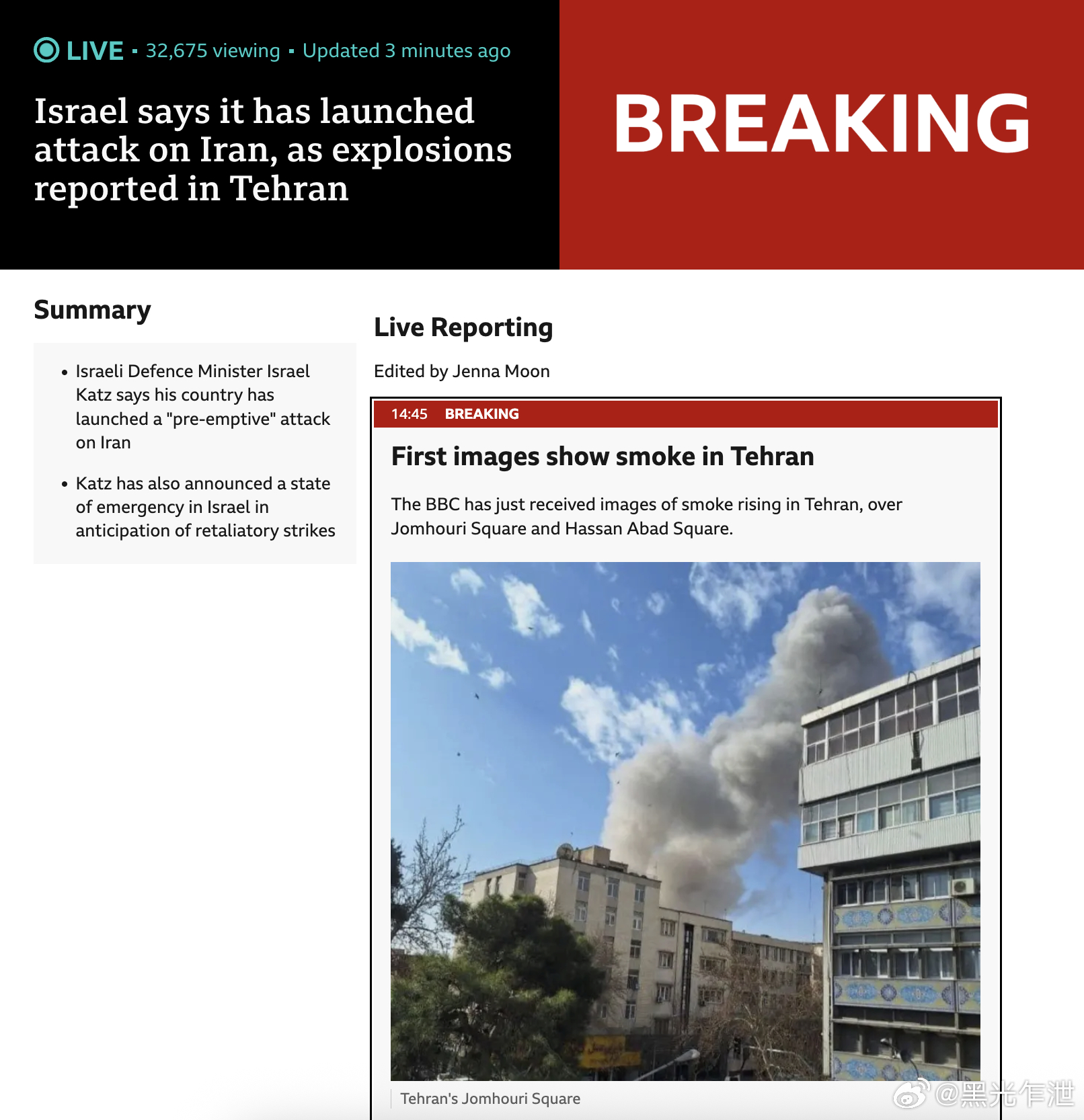 以色列宣布对伊朗发动“先发制人式打击”。🚨