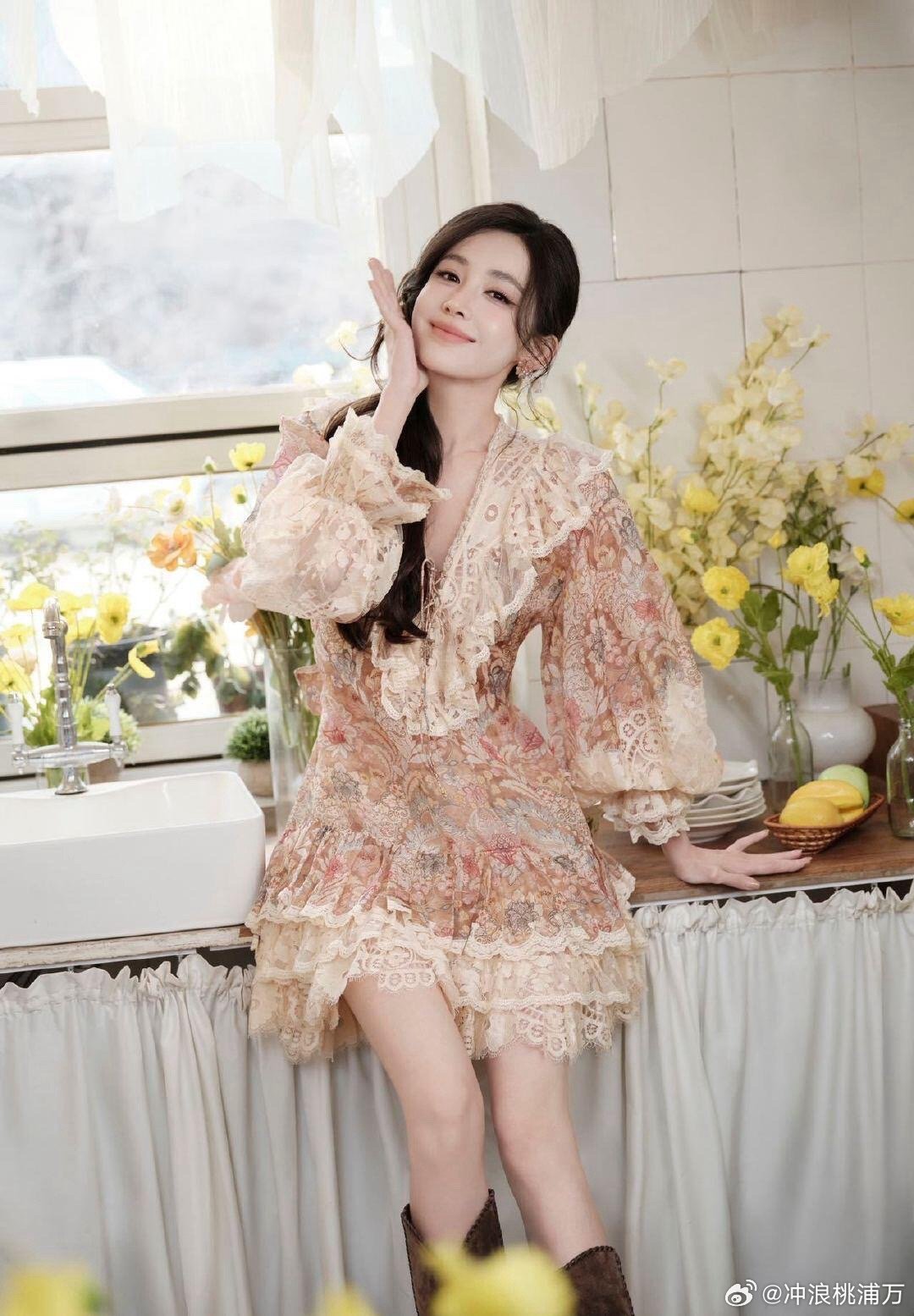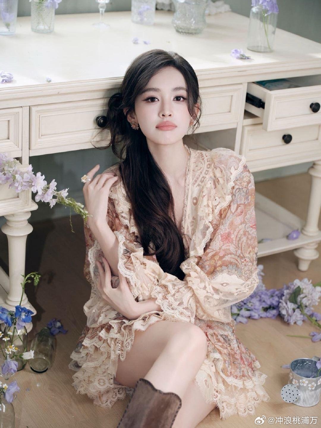 娜扎全新穿搭写真,紫色滤镜,神秘又美丽。娜扎