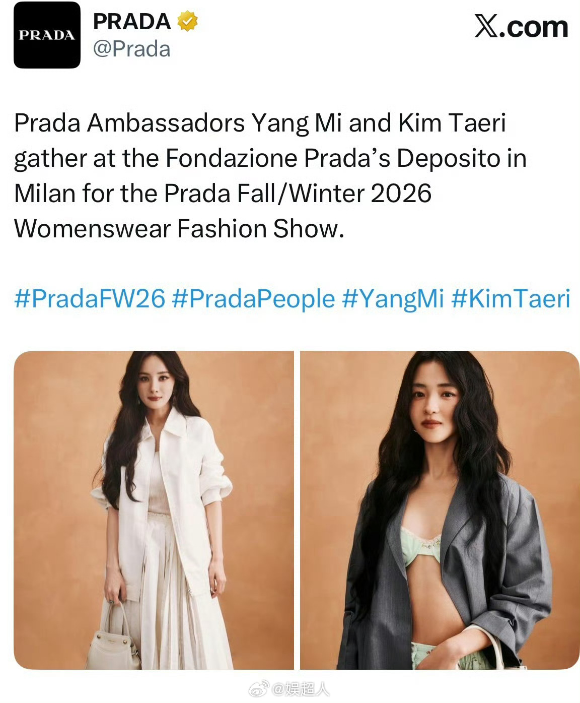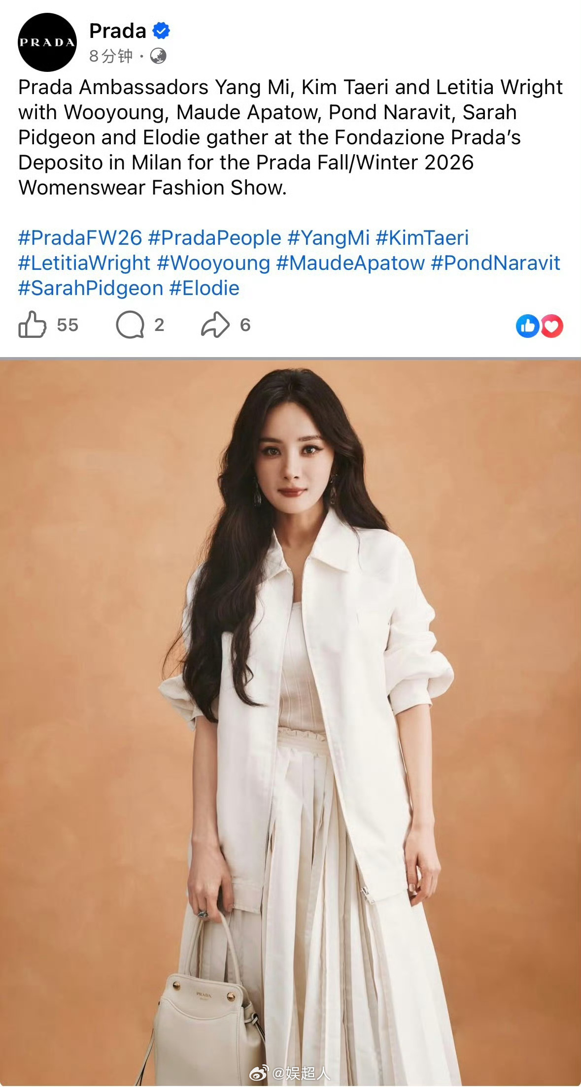 Prada全平台认领杨幂Prada认领杨幂了Prada外网官博都认领了杨幂!名副其实的啪嗒女王✨