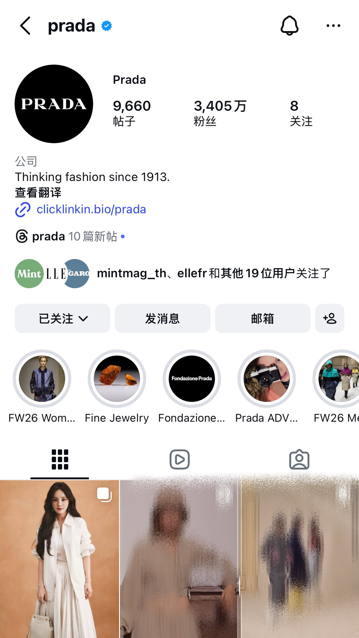 杨幂杨幂Prada品牌代言人 Prada 外网官方ins/X/FB/Threads 四大平台同步认领Prada品牌代言人出席Prada2026秋冬女装时装秀! 各平台杨幂都是封面首图认领、文案首位提及