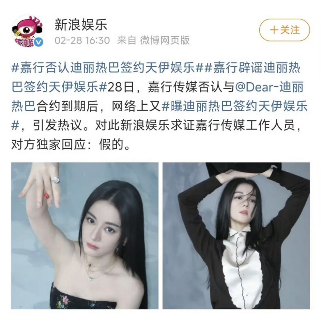 嘉行否认迪丽热巴签约天伊娱乐嘉行火速辟谣签约天伊娱乐传闻,13年合作圆满落幕,她