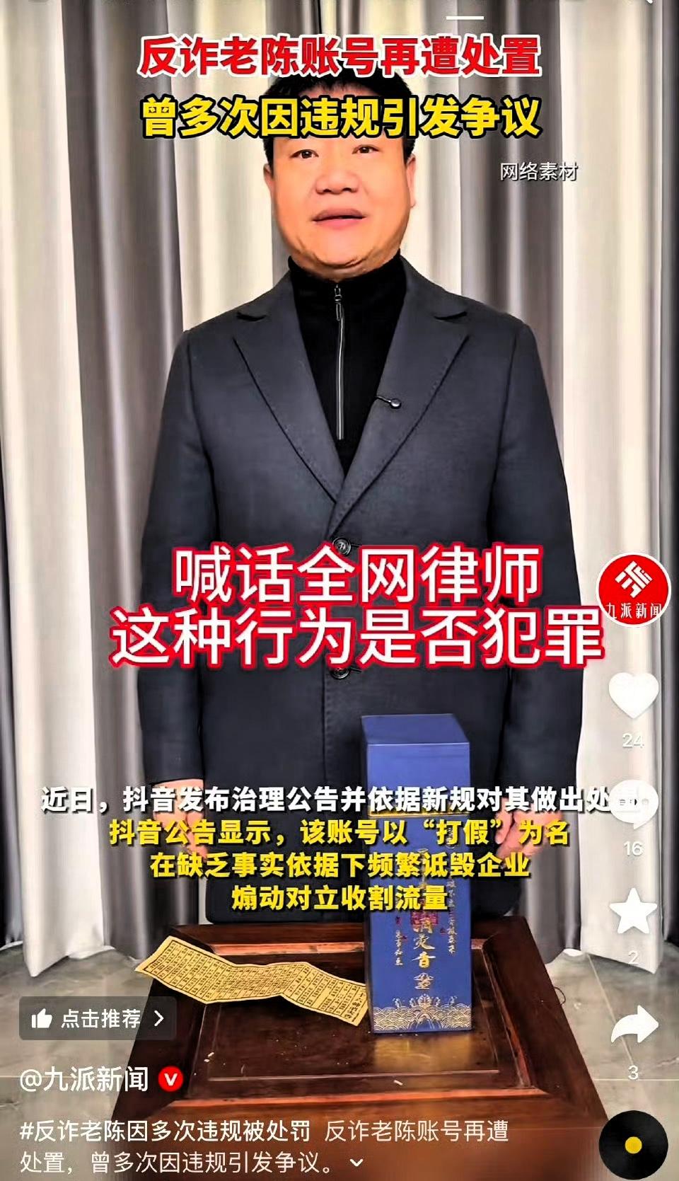 说起老陈这事,我感触颇深。 前两年刷视频时,总能刷到他。那时他还是警察,身着警服坐在镜头前,与各类主播连麦。他那句“我是反诈主播,你是什么主播”火遍全网。说实话,那时的他很招人喜爱,说话接地气,为人和善,把反诈宣传做得十分生动。许多人正是因为他,才了解到电信诈骗的套路。 然而,后来他脱下警服,一心当网红,情况便逐渐改变了。 最近,老陈又登上新闻,缘由是直播时多次违规,被平台处罚。从反诈警察到受罚主播,这事着实令人唏嘘。或许他自己也没料到,当初身着警服规规矩矩直播,如今没了约束,反倒触碰了红线。 我寻思,问题或许出在角色转变了,但思想上没跟上。以前有身份的约束、纪律的规范,说话做事都得谨慎考量。如今成了全职主播,要考虑流量、打赏,还要思考如何留住观众。一旦没把握好度,就容易出问题。 观众对他的态度也颇为复杂。以前大家喜欢他,是因为他身着警服做正事,既亲切又让人安心。如今见他一次次越界,大家的态度自然改变了。说实话,这种转变也在情理之中,公众人物的一言一行都备受关注,只有对得起观众的信任,观众才会一直支持你。 老陈这事让我想起一句话:流量来得快去得也快,但做人的底线任何时候都不能丢。无论粉丝多少、多火,规矩就是规矩。这并非针对某人,而是做主播这一行最基本的道理。 从反诈民警到受罚网红,老陈走的这条路着实令人唏嘘。说到底,就是一个普通人站在风口浪尖,能否守住本分的问题。