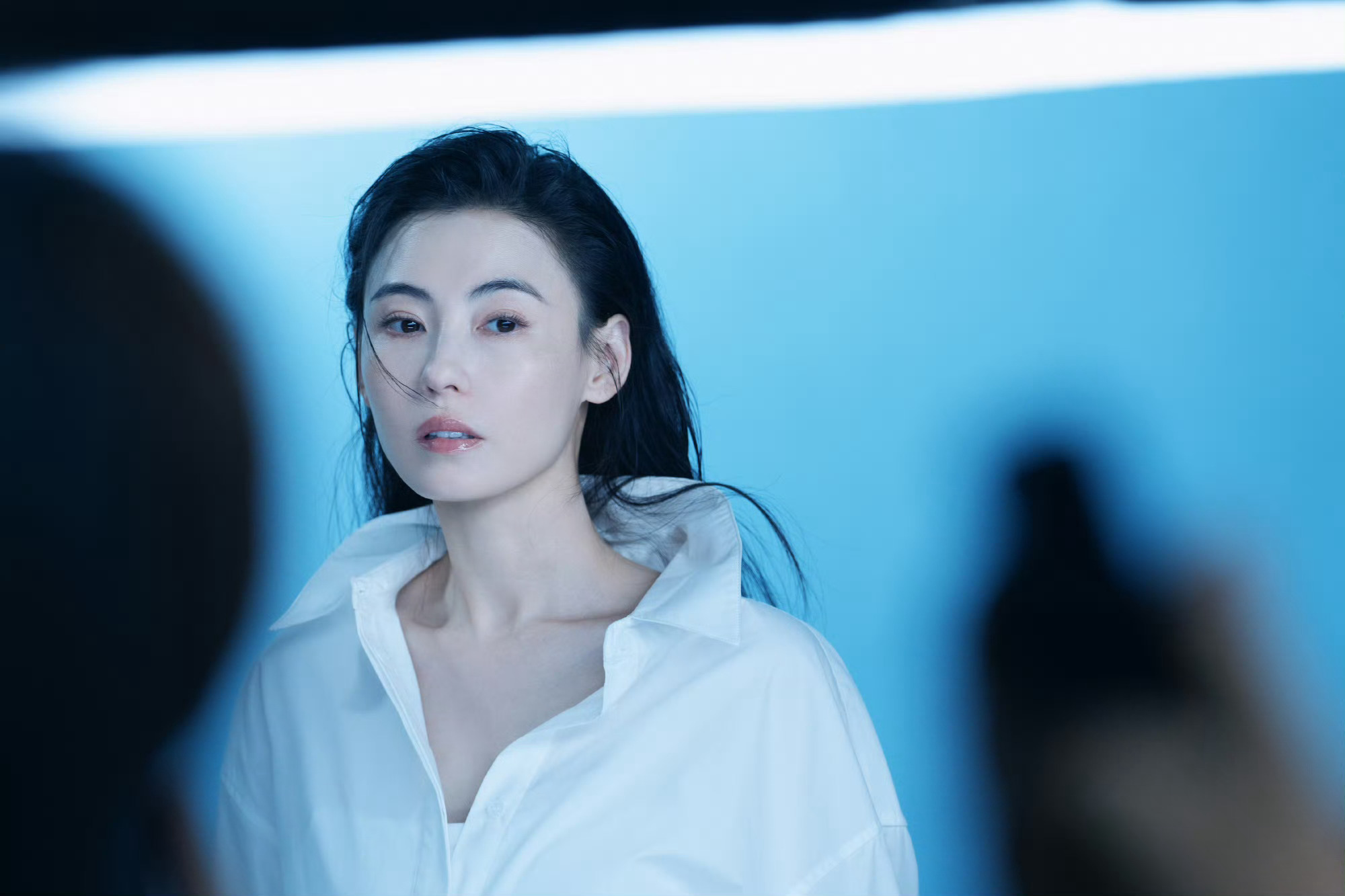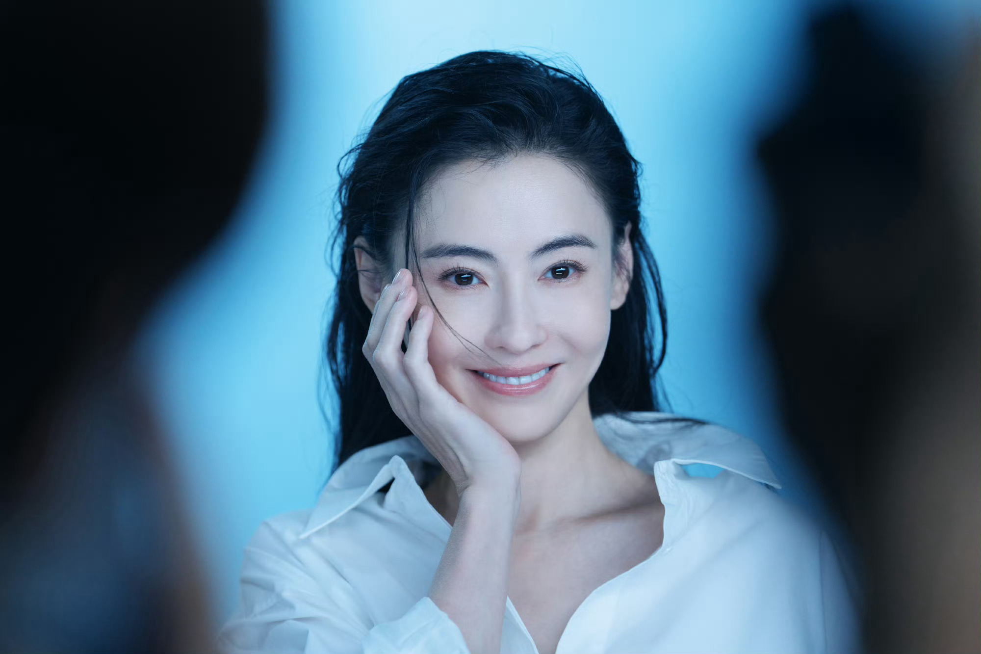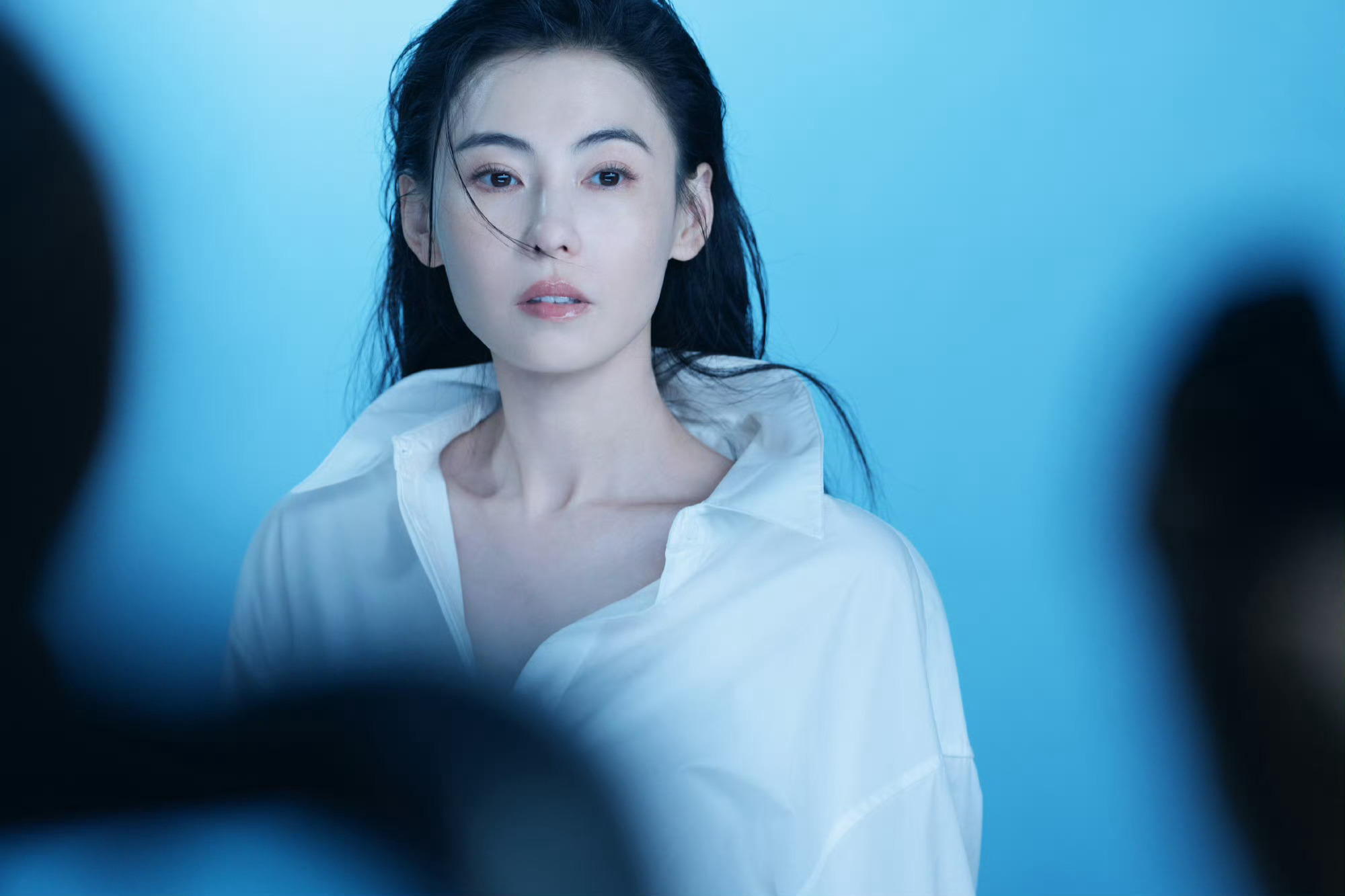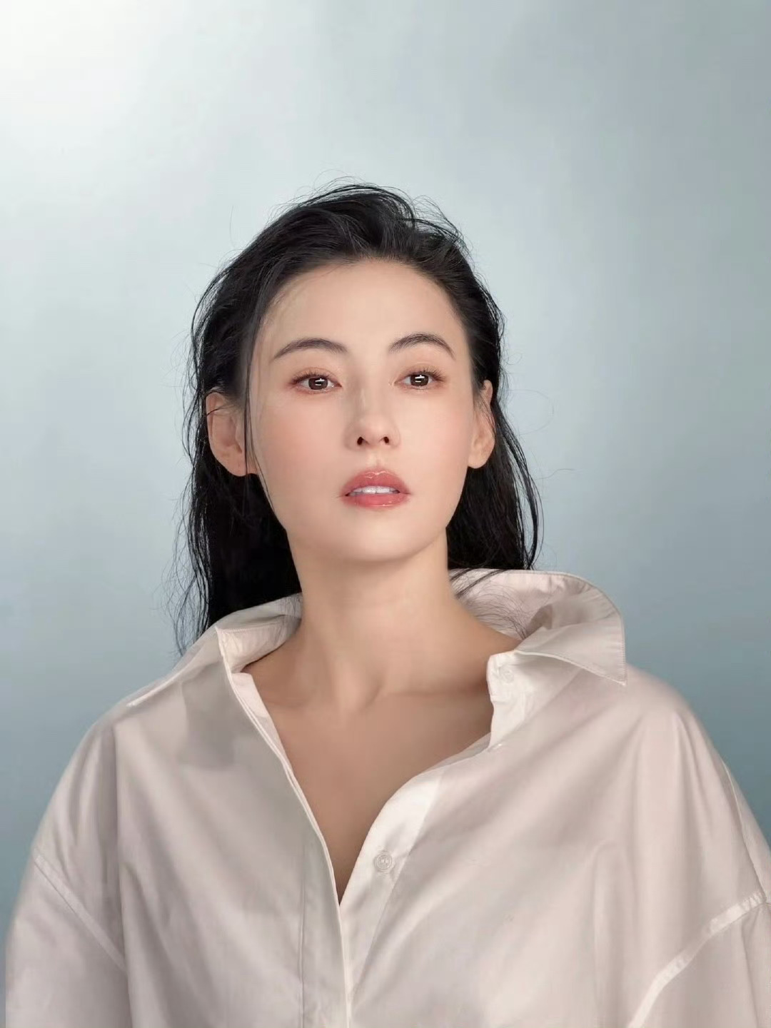 张柏芝清透感张柏芝这组图干净的蓝调背景+简约白衬衫,清透感直接溢出屏幕,自带柔光
