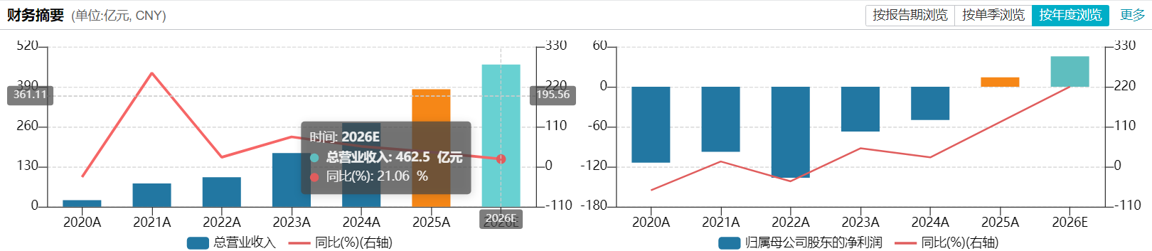 就今年来看,业绩增速指引大幅下修。百济神州给出的2026年全年收入指引为62亿-64亿美元,同比增速仅约20%,相较于2025年40%的营收增速近乎减半。